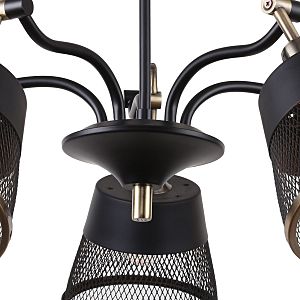 Коллекция Eget в стиле Лофт выполнена в черном цвете с золочением отдельных элементов. Плафоны из металлической сетки оснащены поворотным механизмом. Телескопическая трубка позволяет регулировать высоту светильника адаптируя к высоте помещения.