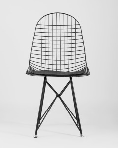 Комплект из четырех стульев Eiffel из металла цвет черный с подушкой из черной экокожи