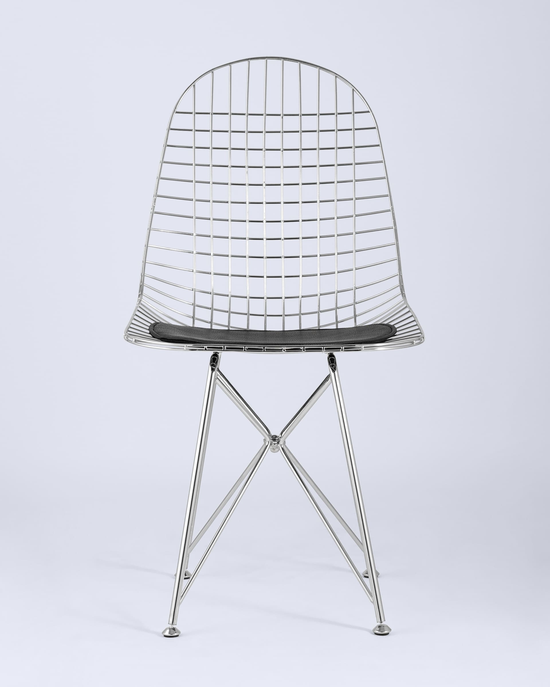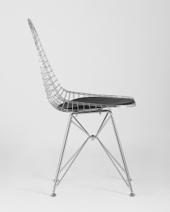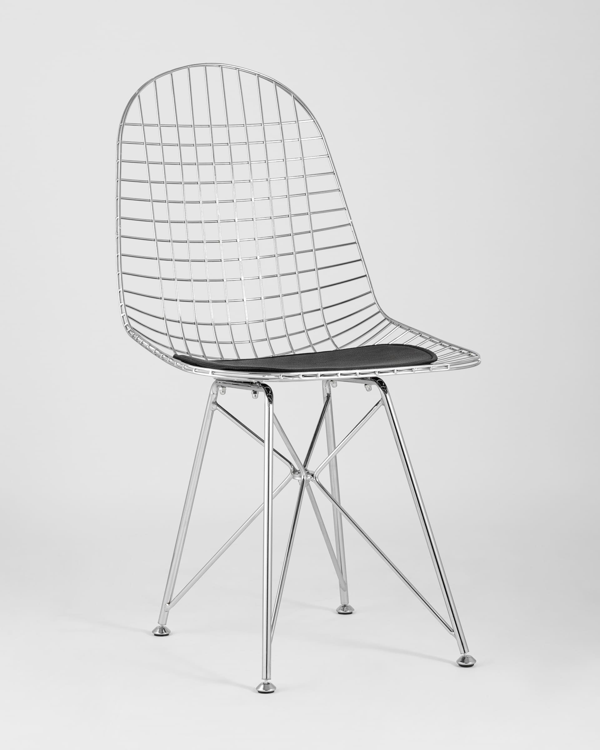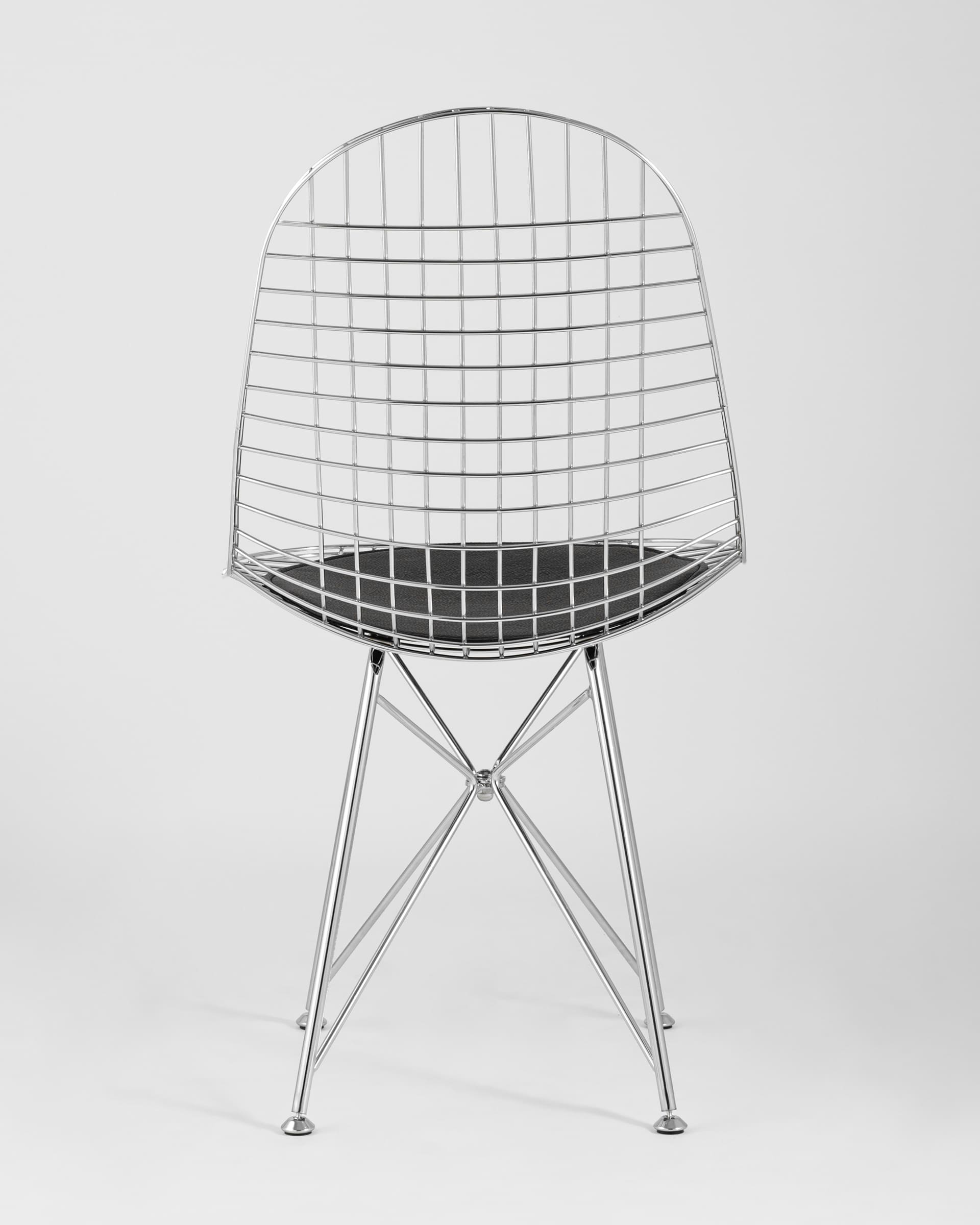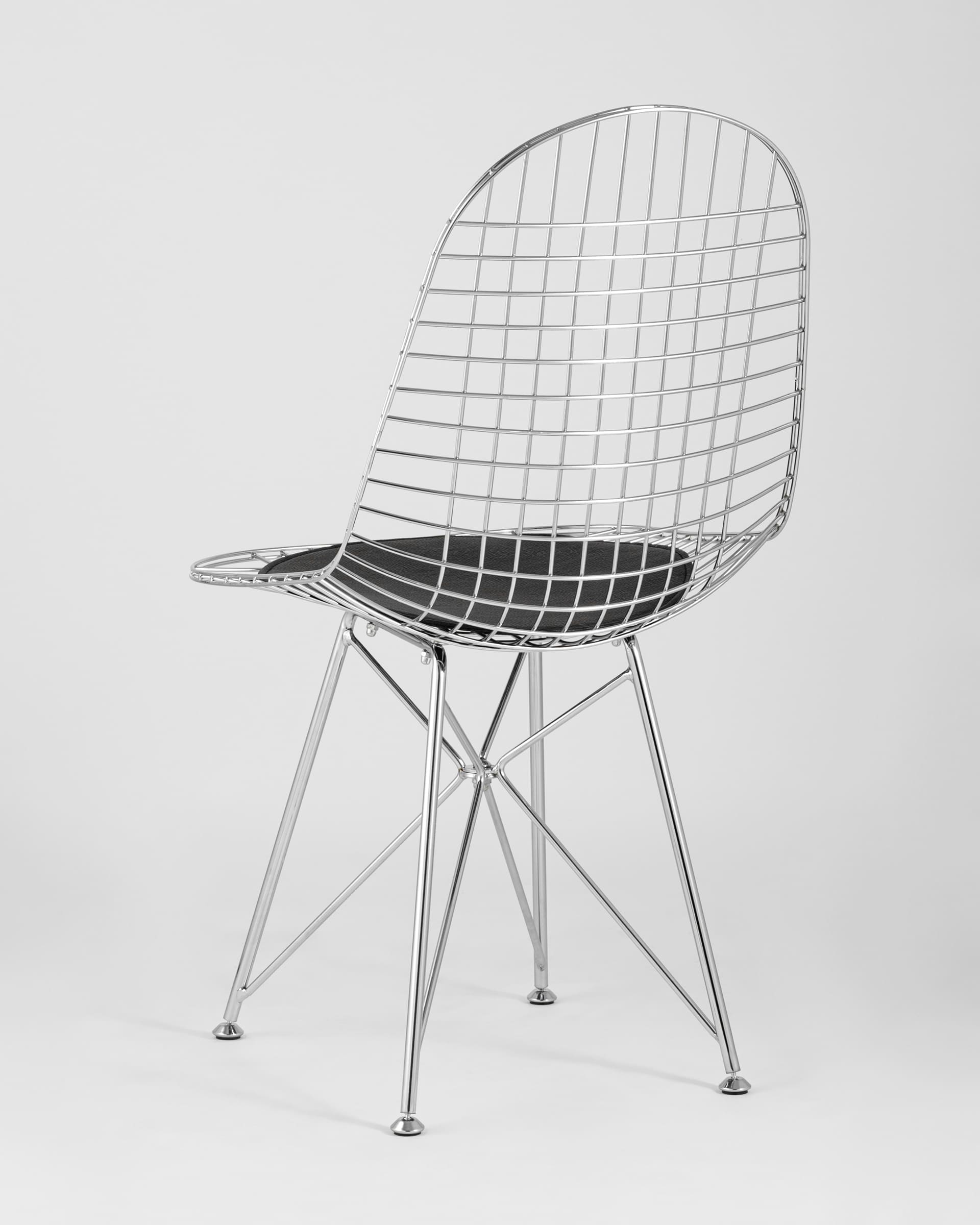 Стул обеденный Eiffel из хромированного металла с черной подушкой из экокожи