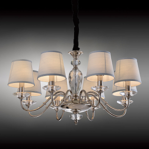 Допускается отличие страны-изготовителя, указанной в характеристиках. Линии производства могут находиться в нескольких государствах. Это не влияет на качество изготовления товара: все заводы данного бренда работают по общим стандартам, а готовые изделия проходят соответствующий контроль.Китай Коллекция Elice ЦветЦвет арматуры Хром Цвет Хром Материал арматуры Металл, Стекло Цвет декора прозрачный Цвет плафона голубой Материал декора Хрусталь Материал плафона Ткань РазмерыВысота (мм) 1460 Диаметр (мм) 790 Высота минимальная (мм) 460 Ширина (мм) 790 ЭлектрикаКоличество ламп (шт) 8 Цоколь E14 Мощность лампы (Вт) 40 Напряжение (В) 220 Дополнительная информацияСпособ крепления Крюк Вес (Кг) 7.56 Тип подвеса На цепи -