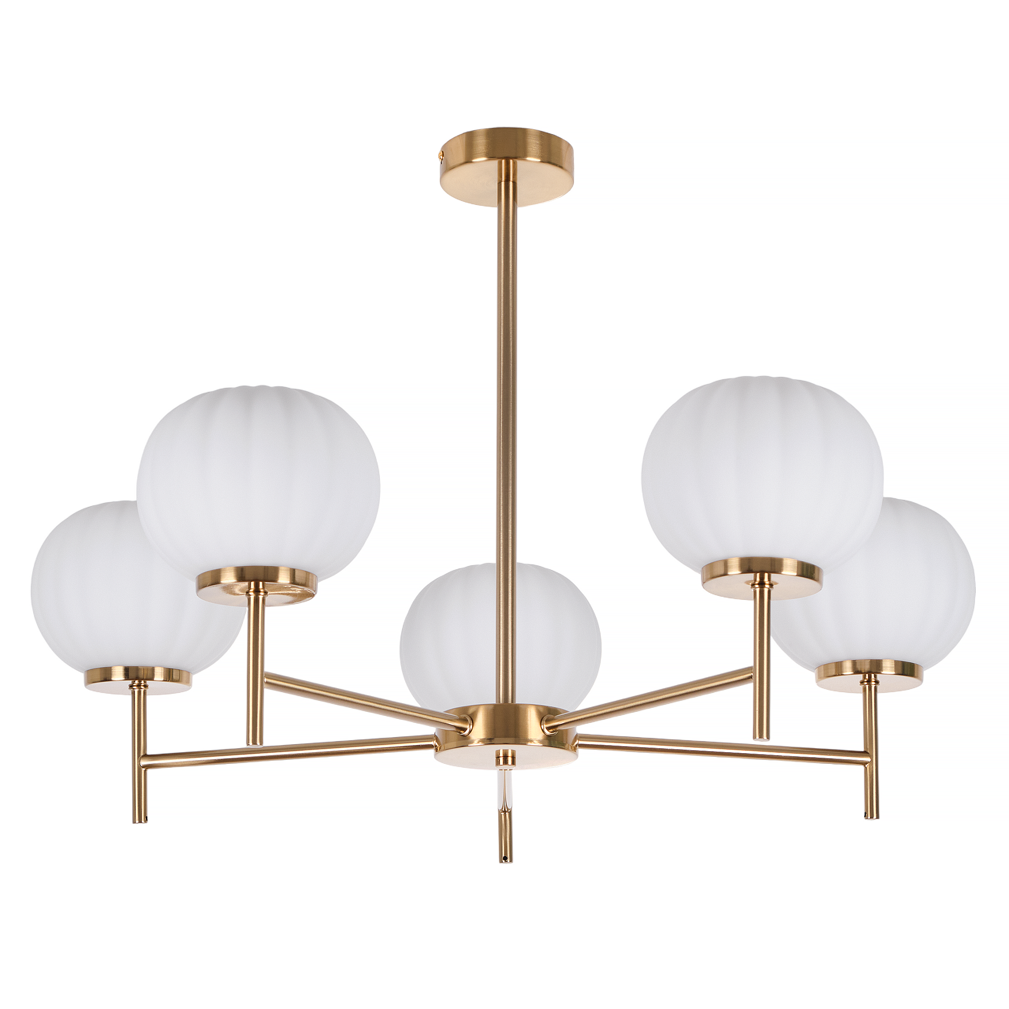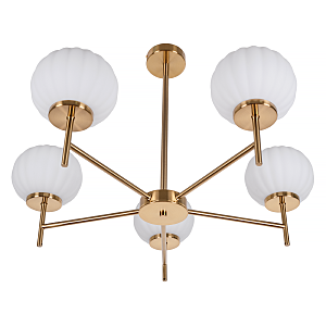 Допускается отличие страны-изготовителя, указанной в характеристиках. Линии производства могут находиться в нескольких государствах. Это не влияет на качество изготовления товара: все заводы данного бренда работают по общим стандартам, а готовые изделия проходят соответствующий контроль.Россия Коллекция Eliza ЦветЦвет арматуры Латунь Цвет Латунь Материал арматуры Металл Цвет плафона Белый Материал плафона Стекло РазмерыВысота (мм) 485 Диаметр (мм) 720 Ширина (мм) 720 ЭлектрикаКоличество ламп (шт) 5 Цоколь E27 Лампочки в комплекте Нет в комплекте Мощность лампы (Вт) 60 Общая мощность (Вт) 300 Напряжение (В) 220 Дополнительная информацияСпособ крепления Планка -