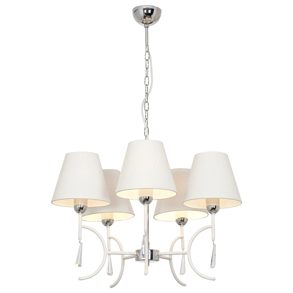 Допускается отличие страны-изготовителя, указанной в характеристиках. Линии производства могут находиться в нескольких государствах. Это не влияет на качество изготовления товара: все заводы данного бренда работают по общим стандартам, а готовые изделия проходят соответствующий контроль.Польша Коллекция Ellice ЦветЦвет арматуры Хром, Белый Цвет Белый Материал арматуры Металл Цвет плафона Белый, хром РазмерыВысота (мм) 850 Диаметр (мм) 600 Высота минимальная (мм) 440 Ширина (мм) 600 ЭлектрикаКоличество ламп (шт) 5 Цоколь E14 Мощность лампы (Вт) 60 Общая мощность (Вт) 300 Напряжение (В) 220 Дополнительная информацияСтепень защиты (IP) IP20 Вес (Кг) 2 Тип подвеса На цепи -