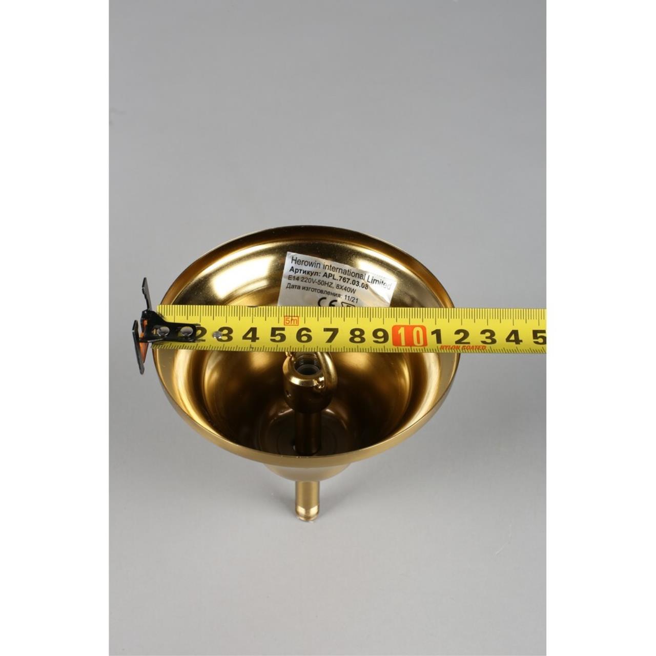 Допускается отличие страны-изготовителя, указанной в характеристиках. Линии производства могут находиться в нескольких государствах. Это не влияет на качество изготовления товара: все заводы данного бренда работают по общим стандартам, а готовые изделия проходят соответствующий контроль.Польша Коллекция Elza ЦветЦвет арматуры Бронза Цвет Бронза Материал арматуры Металл Цвет декора прозрачный Цвет плафона бежевый Материал декора Хрусталь Материал плафона Ткань РазмерыВысота (мм) 1100 Диаметр (мм) 750 Высота минимальная (мм) 700 Ширина (мм) 750 ЭлектрикаКоличество ламп (шт) 8 Цоколь E14 Лампочки в комплекте Нет в комплекте Мощность лампы (Вт) 40 Общая мощность (Вт) 320 Световой поток 3360 Дополнительная информацияСпособ крепления Крюк Вес (Кг) 6.1 Тип подвеса На цепи -