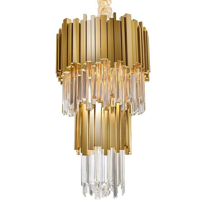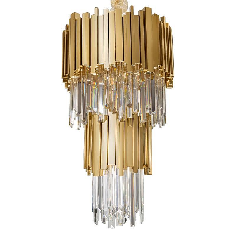 Допускается отличие страны-изготовителя, указанной в характеристиках. Линии производства могут находиться в нескольких государствах. Это не влияет на качество изготовления товара: все заводы данного бренда работают по общим стандартам, а готовые изделия проходят соответствующий контроль.Италия Коллекция Empire ЦветЦвет арматуры Золото, Шампань Материал арматуры Металл Цвет плафона прозрачный Материал плафона Стекло РазмерыВысота (мм) 700 Диаметр (мм) 350 Ширина (мм) 350 ЭлектрикаКоличество ламп (шт) 5 Цоколь E14 Мощность лампы (Вт) 40 Напряжение (В) 220 Дополнительная информацияТип подвеса На цепи -