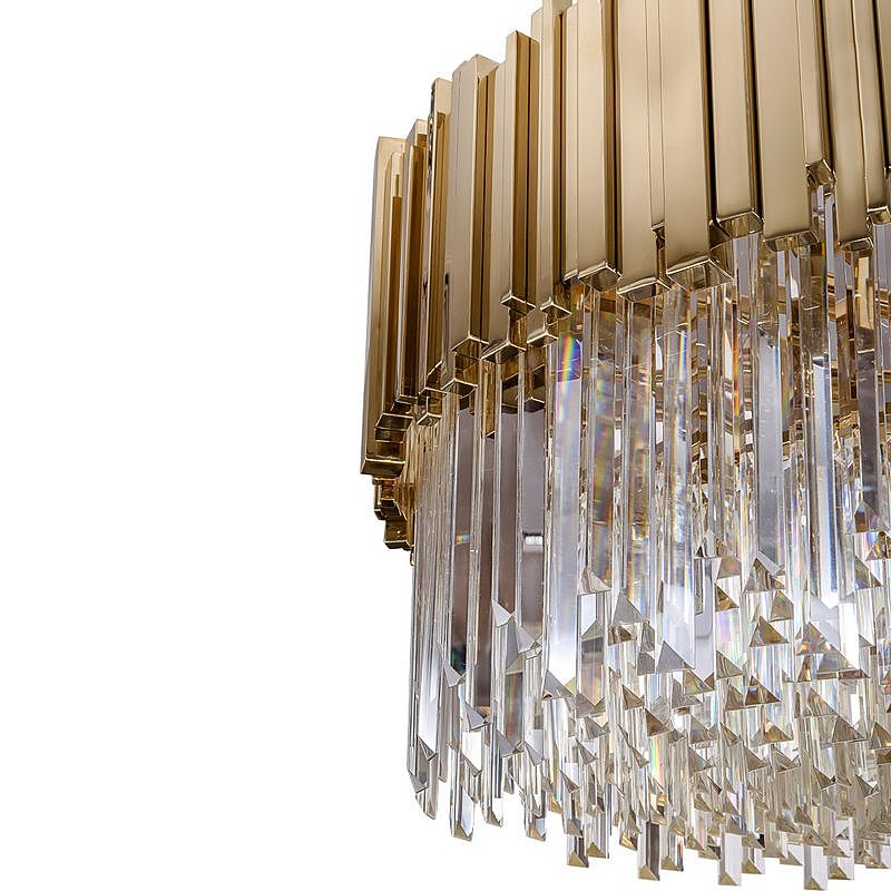 Допускается отличие страны-изготовителя, указанной в характеристиках. Линии производства могут находиться в нескольких государствах. Это не влияет на качество изготовления товара: все заводы данного бренда работают по общим стандартам, а готовые изделия проходят соответствующий контроль.Италия Коллекция Empire ЦветЦвет арматуры Золото, Шампань Цвет Золото Материал арматуры Металл Цвет плафона прозрачный Материал плафона Стекло РазмерыВысота (мм) 500 Диаметр (мм) 800 Ширина (мм) 800 ЭлектрикаКоличество ламп (шт) 16 Цоколь E14 Мощность лампы (Вт) 40 Напряжение (В) 220 Дополнительная информацияТип подвеса На цепи -