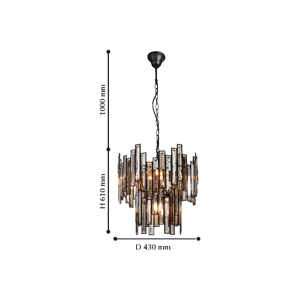 Допускается отличие страны-изготовителя, указанной в характеристиках. Линии производства могут находиться в нескольких государствах. Это не влияет на качество изготовления товара: все заводы данного бренда работают по общим стандартам, а готовые изделия проходят соответствующий контроль.Германия Коллекция Enigma ЦветЦвет арматуры Черный Цвет Черный Материал арматуры Металл Материал плафона Хрусталь РазмерыВысота (мм) 1610 Диаметр (мм) 430 Высота минимальная (мм) 610 Ширина (мм) 430 ЭлектрикаКоличество ламп (шт) 9 Цоколь E14 Мощность лампы (Вт) 40 Напряжение (В) 220 Дополнительная информацияСпособ крепления Крюк Тип подвеса На цепи -