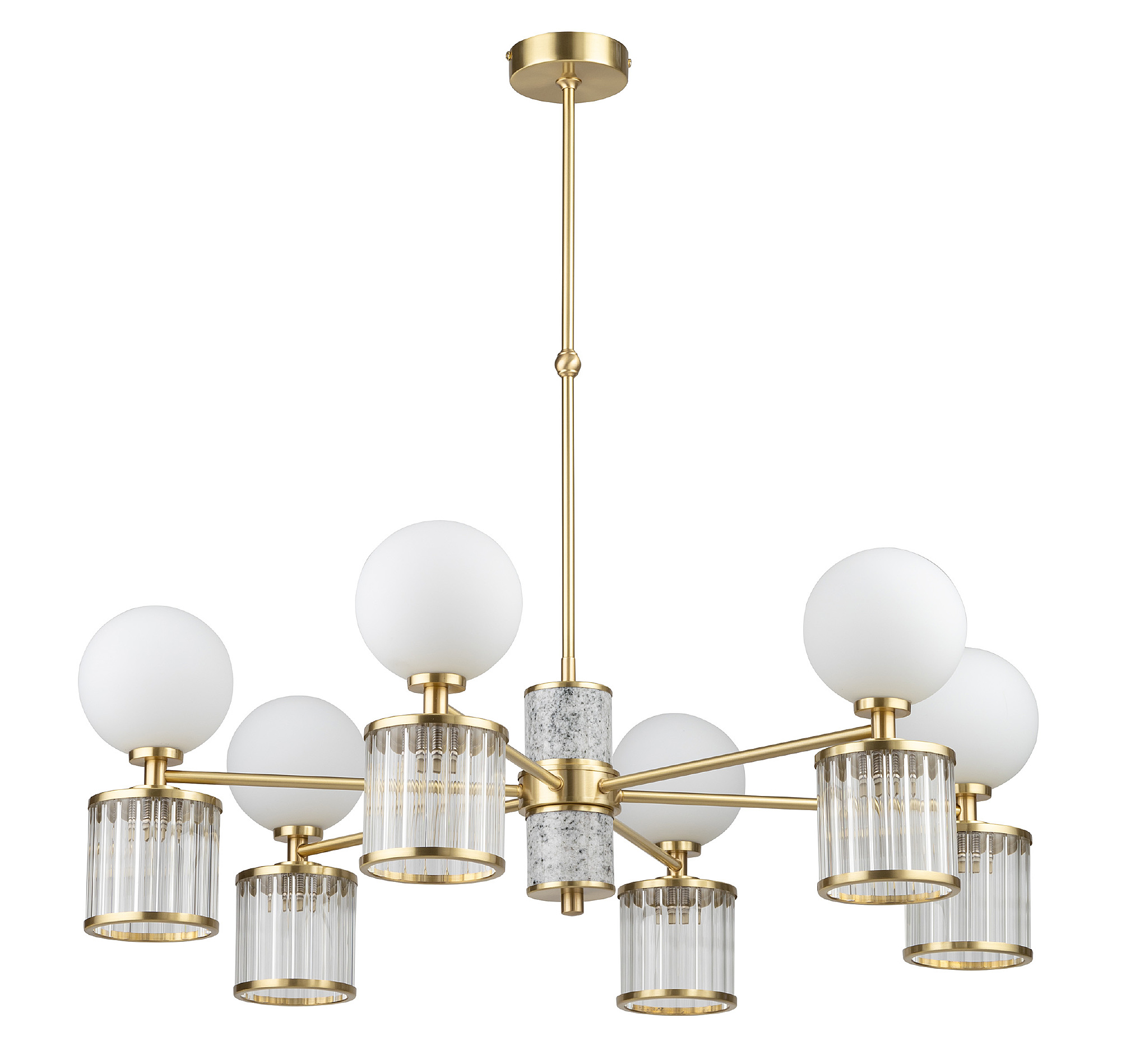 Модель ERB-ZW-6 (ZM/3) BT - более светлая интерпретация с белыми абажурами. Обеспечивает воздушный, равномерный свет. Отлично сочетается с интерьерами в неоклассике, белыми стенами и светлым деревом.
