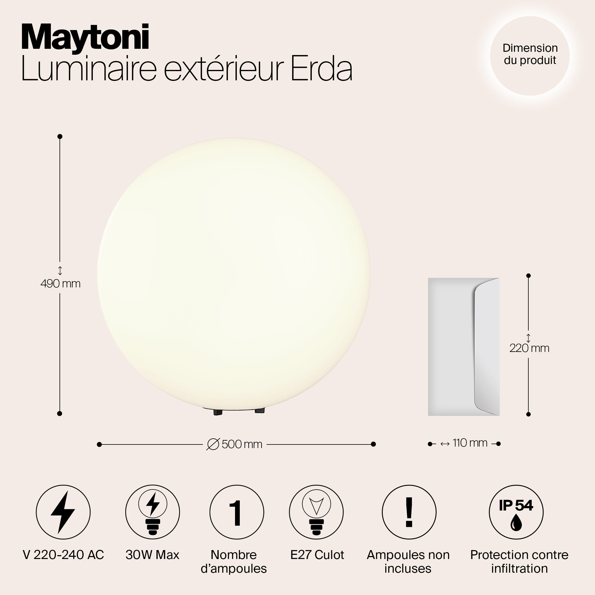 Допускается отличие страны-изготовителя, указанной в характеристиках. Линии производства могут находиться в нескольких государствах. Это не влияет на качество изготовления товара: все заводы данного бренда работают по общим стандартам, а готовые изделия проходят соответствующий контроль.Германия Коллекция Erda ЦветЦвет арматуры Белый Цвет Белый Материал арматуры Пластик РазмерыВысота (мм) 490 Длина (мм) 500 Ширина (мм) 500 ЭлектрикаКоличество ламп (шт) 1 Цоколь E27 Лампочки в комплекте Нет в комплекте Мощность лампы (Вт) 30 Напряжение (В) 220 Дополнительная информацияСтепень защиты (IP) IP54 Вес (Кг) 2,31 -