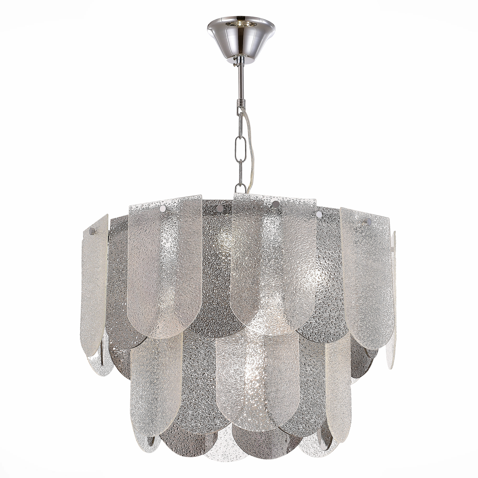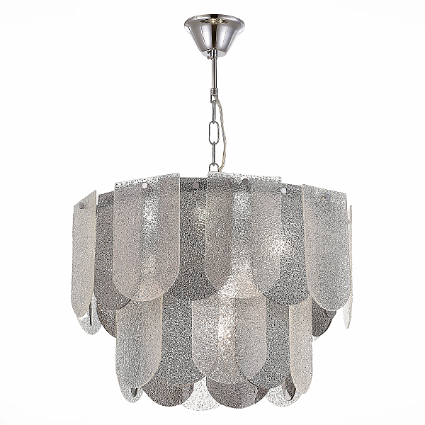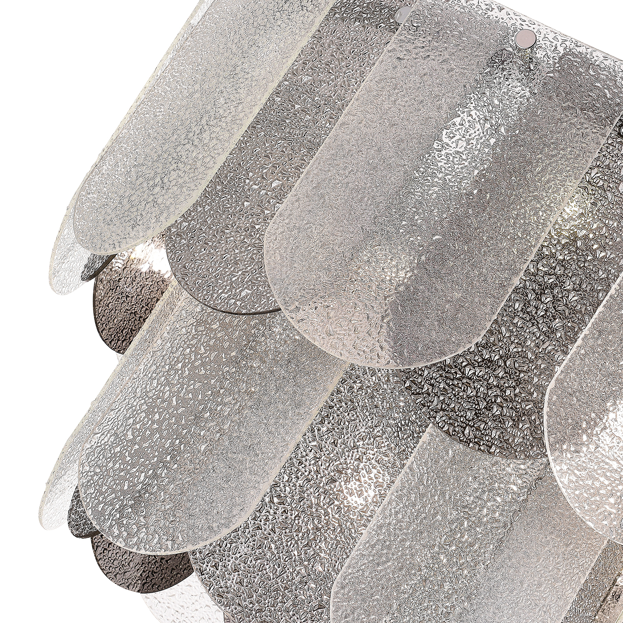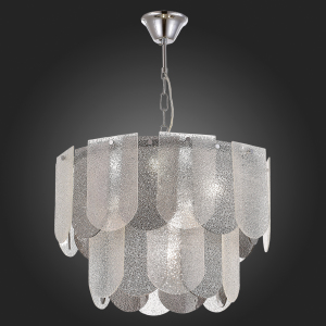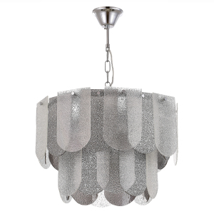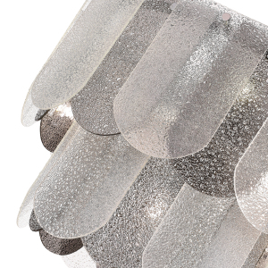 Светильник из коллекции Erzo обязательно станет центральным элементом комнаты и будет привлекать внимание гостей. Монохромная гамма и фактура стекла создадут интересную игру света и тени, а хромированные детали основания придадут интерьеру мягкое сияние и нотку гламура. Главным акцентом являются декоративные пластинки 12 на16 см из рельефного стекла с эффектом капель воды и удобным креплением, которое сэкономит время сборки. В серии представлены четыре предмета: бра; потолочный светильник в один ряд без возможности регулировки по высоте и с круглым рассеивателем по всему диаметру; а так же подвесные светильники - в 2 ряда на 7 ламп и 3 ряда на 12 ламп соответственно, что обеспечивает качественное освещение в помещениях площадью до 30 м.