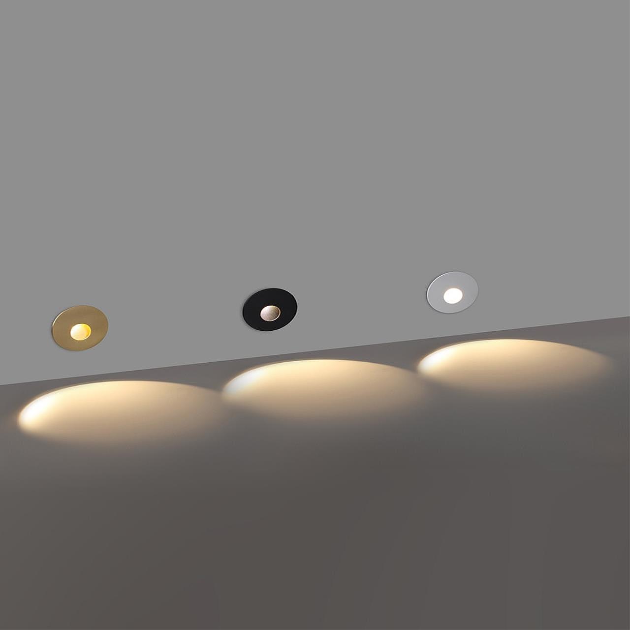Если хотите максимально широкий луч от встраиваемых подсветок, то вам идеально подойдут подсветки Escala в округлой форме. Они выполнены в трех цветах - черном, белом и под латунь, CRI90, LED чипы бренда OSRAM. Монтажная коробка из алюминия входит в комплект. При использовании данных светильников необходимо помнить, что чем выше светильник, тем больше размеры луча. Так, на высоте 22 см светильник дает длину луча до 90 см в широкой части, на высоте 7 см - длина луча до 40 см.