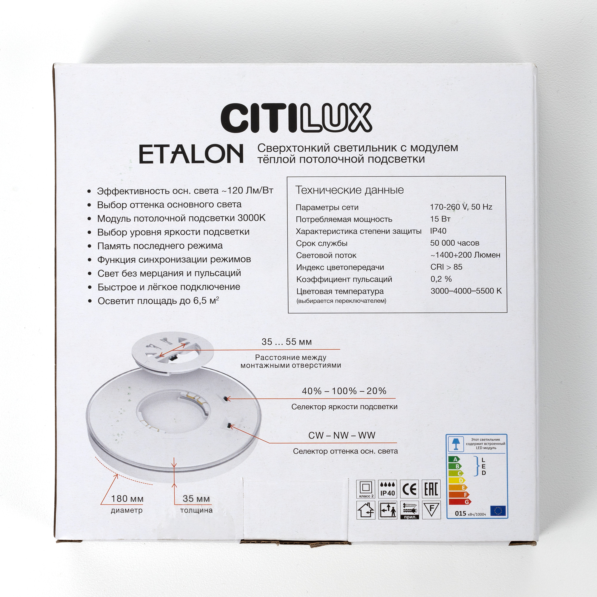 Допускается отличие страны-изготовителя, указанной в характеристиках. Линии производства могут находиться в нескольких государствах. Это не влияет на качество изготовления товара: все заводы данного бренда работают по общим стандартам, а готовые изделия проходят соответствующий контроль.Дания Коллекция Etalon ЦветЦвет арматуры Золото, Черный Цвет Черный Материал арматуры Высокопрочный полимер РазмерыВысота (мм) 35 Диаметр (мм) 180 Ширина (мм) 180 ЭлектрикаКоличество ламп (шт) 1 Цоколь LED Тип лампы Светодиодная Мощность лампы (Вт) 15 Общая мощность (Вт) 15 Световой поток 1350 Цветовая температура 3000-4000-5500 Площадь освещения 6,5 Дополнительная информацияСпособ крепления Планка Степень защиты (IP) IP40 Техническая оссобеность Регулировка яркости, Полностью светодиодная, Регулировка цветовой температуры -