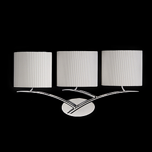 Допускается отличие страны-изготовителя, указанной в характеристиках. Линии производства могут находиться в нескольких государствах. Это не влияет на качество изготовления товара: все заводы данного бренда работают по общим стандартам, а готовые изделия проходят соответствующий контроль.Испания Коллекция Eve ЦветЦвет арматуры Хром Цвет Белый Материал арматуры Металл Цвет плафона Белый Материал плафона Ткань РазмерыВысота (мм) 310 Длина (мм) 600 Высота минимальная (мм) 310 Ширина (мм) 140 ЭлектрикаКоличество ламп (шт) 3 Цоколь E27 Тип лампы Энергосберегающая (КЛЛ) Лампочки в комплекте Нет в комплекте Возможность подключение диммера Нет Мощность лампы (Вт) 20 Общая мощность (Вт) 60 Напряжение (В) 220 Мощность эквивалентная лампе накаливания 300 Дополнительная информацияСтепень защиты (IP) IP20 Место установки на стену Вес (Кг) 0,6 -