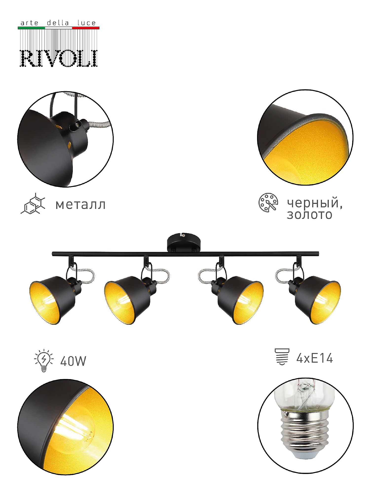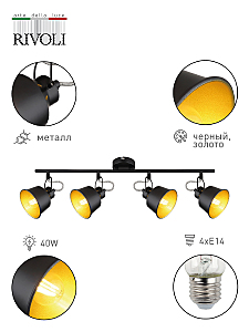Светильник настенно-потолочный спот Rivoli Evelyn 7064-704 4 х Е14 40 Вт поворотный