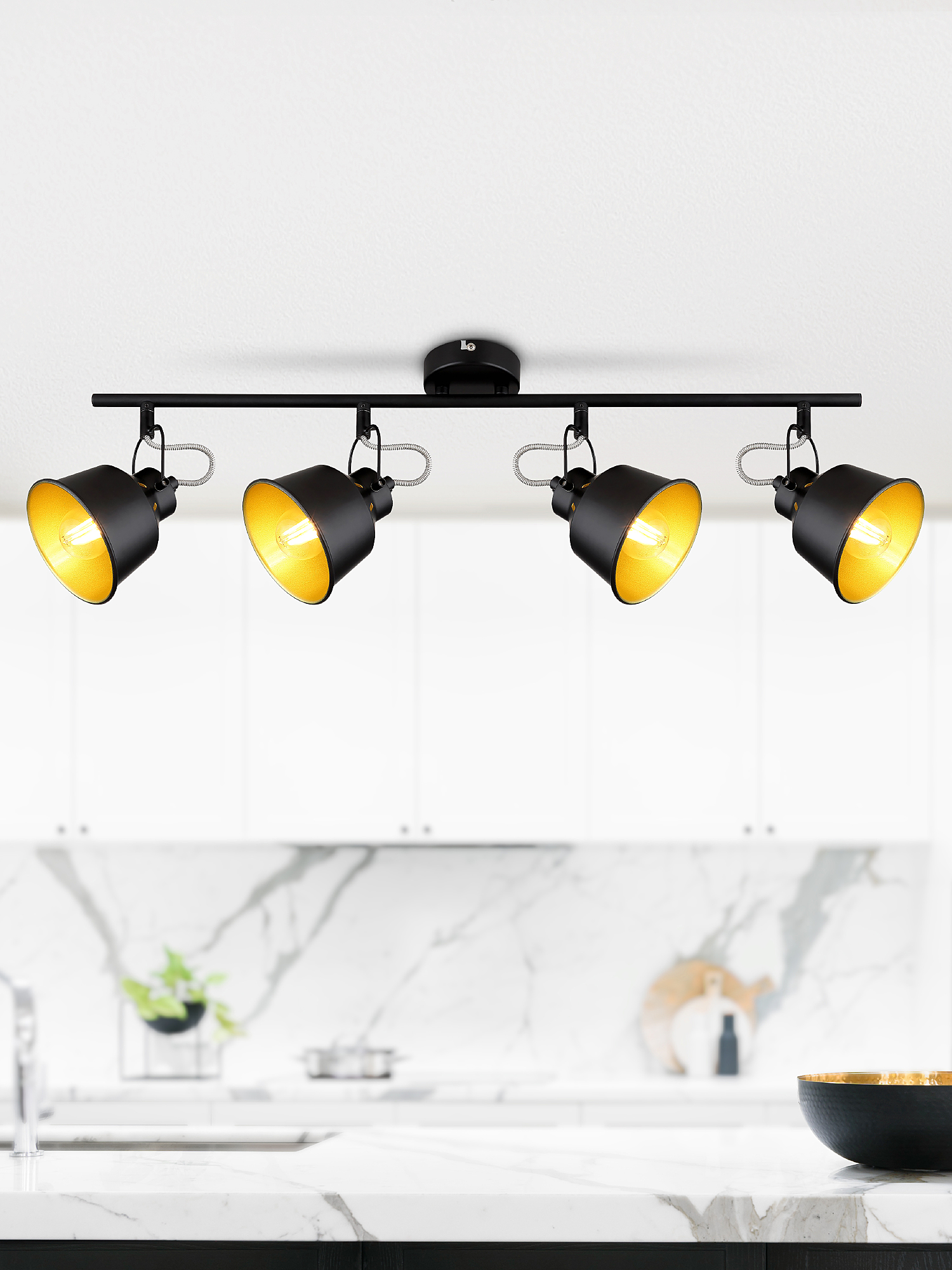 Допускается отличие страны-изготовителя, указанной в характеристиках. Линии производства могут находиться в нескольких государствах. Это не влияет на качество изготовления товара: все заводы данного бренда работают по общим стандартам, а готовые изделия проходят соответствующий контроль.Италия Коллекция Evelyn ЦветЦвет арматуры Черный Цвет Черный Материал арматуры Металл Цвет плафона Черный, золото Материал плафона Металл РазмерыВысота (мм) 188 Длина (мм) 700 Ширина (мм) 114 ЭлектрикаКоличество ламп (шт) 4 Цоколь E14 Мощность лампы (Вт) 40 Напряжение (В) 220 Площадь освещения 12 Дополнительная информацияСпособ крепления Планка Степень защиты (IP) IP20 Вес (Кг) 1,3 Техническая оссобеность Поворотный -