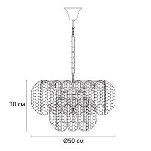 Допускается отличие страны-изготовителя, указанной в характеристиках. Линии производства могут находиться в нескольких государствах. Это не влияет на качество изготовления товара: все заводы данного бренда работают по общим стандартам, а готовые изделия проходят соответствующий контроль.Италия Коллекция Evelyn ЦветЦвет арматуры Медный Цвет Медь Материал арматуры Металл Цвет плафона прозрачный Материал плафона Стекло РазмерыВысота (мм) 1000 Диаметр (мм) 500 Высота минимальная (мм) 300 Ширина (мм) 500 ЭлектрикаКоличество ламп (шт) 7 Цоколь E14 Мощность лампы (Вт) 40 Напряжение (В) 220 Дополнительная информацияСтепень защиты (IP) IP20 Вес (Кг) 5 Тип подвеса На цепи -