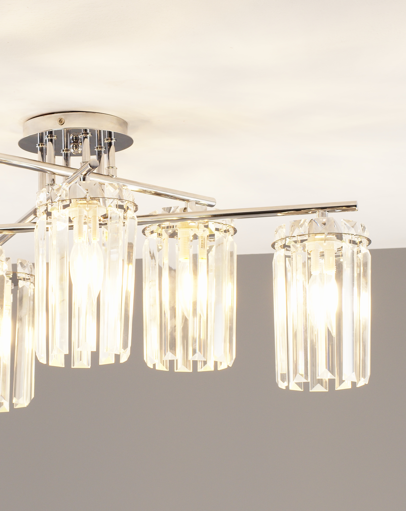 Допускается отличие страны-изготовителя, указанной в характеристиках. Линии производства могут находиться в нескольких государствах. Это не влияет на качество изготовления товара: все заводы данного бренда работают по общим стандартам, а готовые изделия проходят соответствующий контроль.Италия Коллекция Everly ЦветЦвет арматуры Хром Цвет Хром Материал арматуры Металл, хрусталь К9 Цвет плафона прозрачный Материал плафона Хрусталь РазмерыВысота (мм) 320 Ширина (мм) 680 Глубина (мм) 680 ЭлектрикаКоличество ламп (шт) 6 Цоколь E14 Тип лампы Светодиодная, Накаливания Лампочки в комплекте нет Мощность лампы (Вт) 40 Площадь освещения 15 Дополнительная информацияСпособ крепления на планку Вес (Кг) 4.17 -