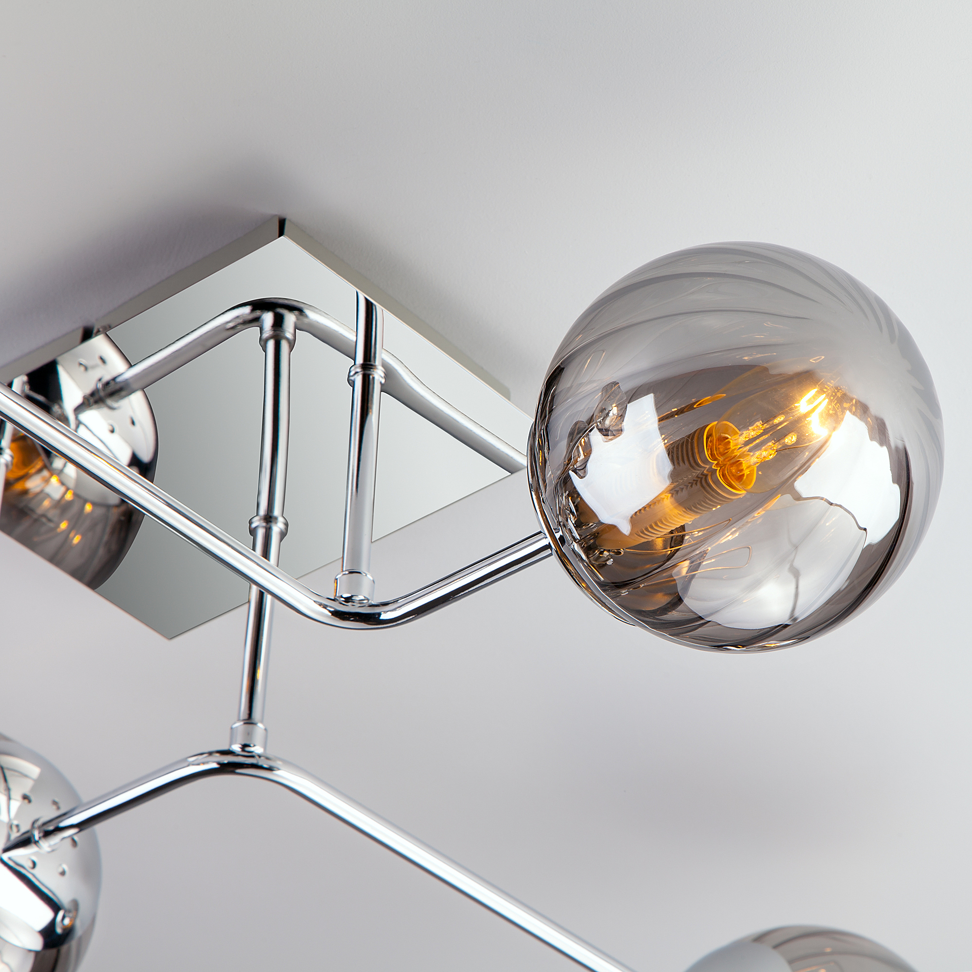 Допускается отличие страны-изготовителя, указанной в характеристиках. Линии производства могут находиться в нескольких государствах. Это не влияет на качество изготовления товара: все заводы данного бренда работают по общим стандартам, а готовые изделия проходят соответствующий контроль.Китай Коллекция Evita ЦветЦвет арматуры Хром Цвет Хром Материал арматуры Металл Цвет плафона дымчатый Материал плафона Стекло РазмерыВысота (мм) 210 Длина (мм) 740 Ширина (мм) 800 ЭлектрикаКоличество ламп (шт) 6 Цоколь E14 Лампочки в комплекте Нет в комплекте Мощность лампы (Вт) 40 Напряжение (В) 220 Площадь освещения 16 Дополнительная информацияСпособ крепления Планка Степень защиты (IP) IP20 -