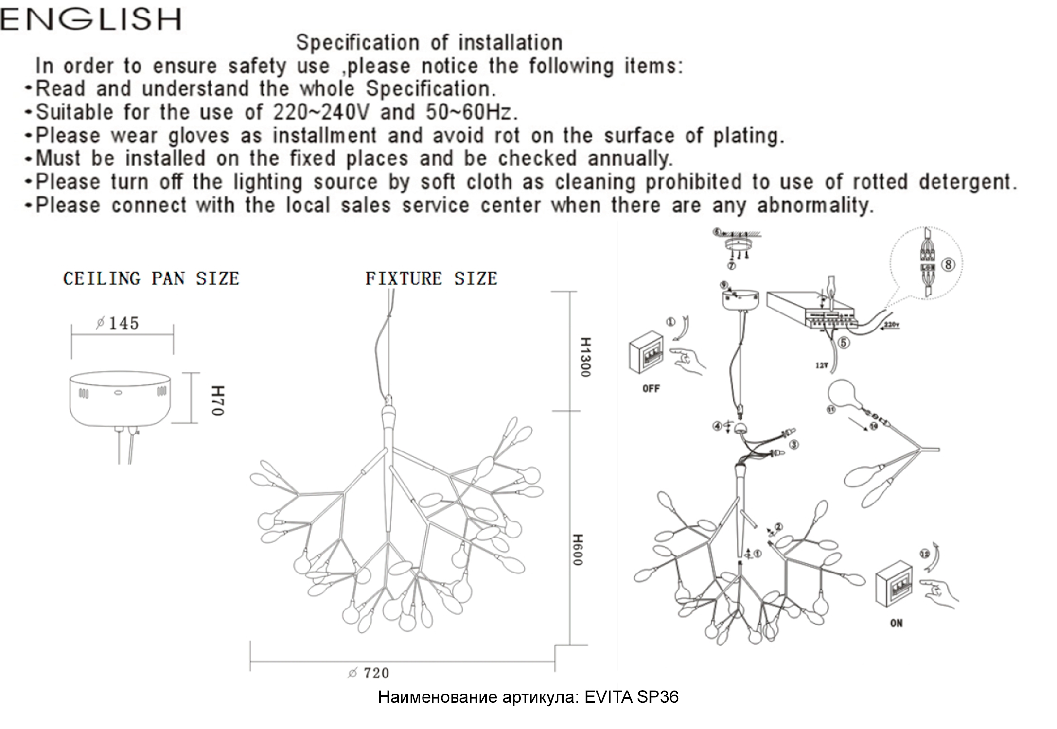 Допускается отличие страны-изготовителя, указанной в характеристиках. Линии производства могут находиться в нескольких государствах. Это не влияет на качество изготовления товара: все заводы данного бренда работают по общим стандартам, а готовые изделия проходят соответствующий контроль.Испания Коллекция Evita ЦветЦвет арматуры Черный Цвет Черный Материал арматуры Металл Цвет плафона прозрачный Материал плафона Стекло РазмерыВысота (мм) 1900 Диаметр (мм) 720 Высота минимальная (мм) 600 Ширина (мм) 720 ЭлектрикаКоличество ламп (шт) 36 Цоколь G4 Мощность лампы (Вт) 1 Дополнительная информацияСтепень защиты (IP) 20 Вес (Кг) 4,1 Тип подвеса На тросах -