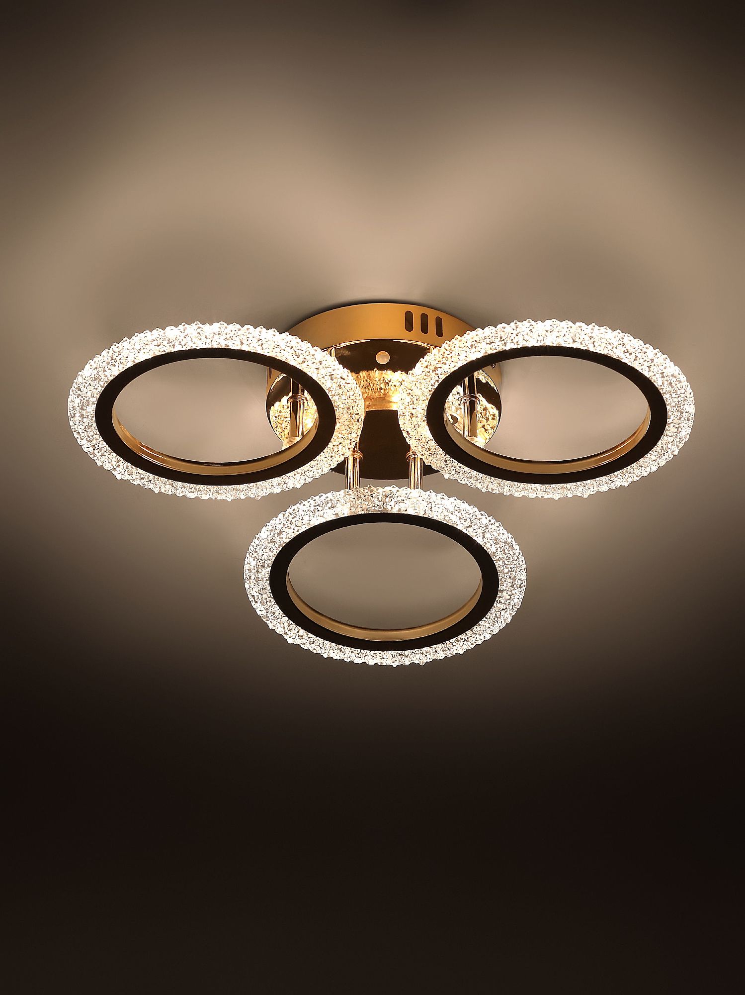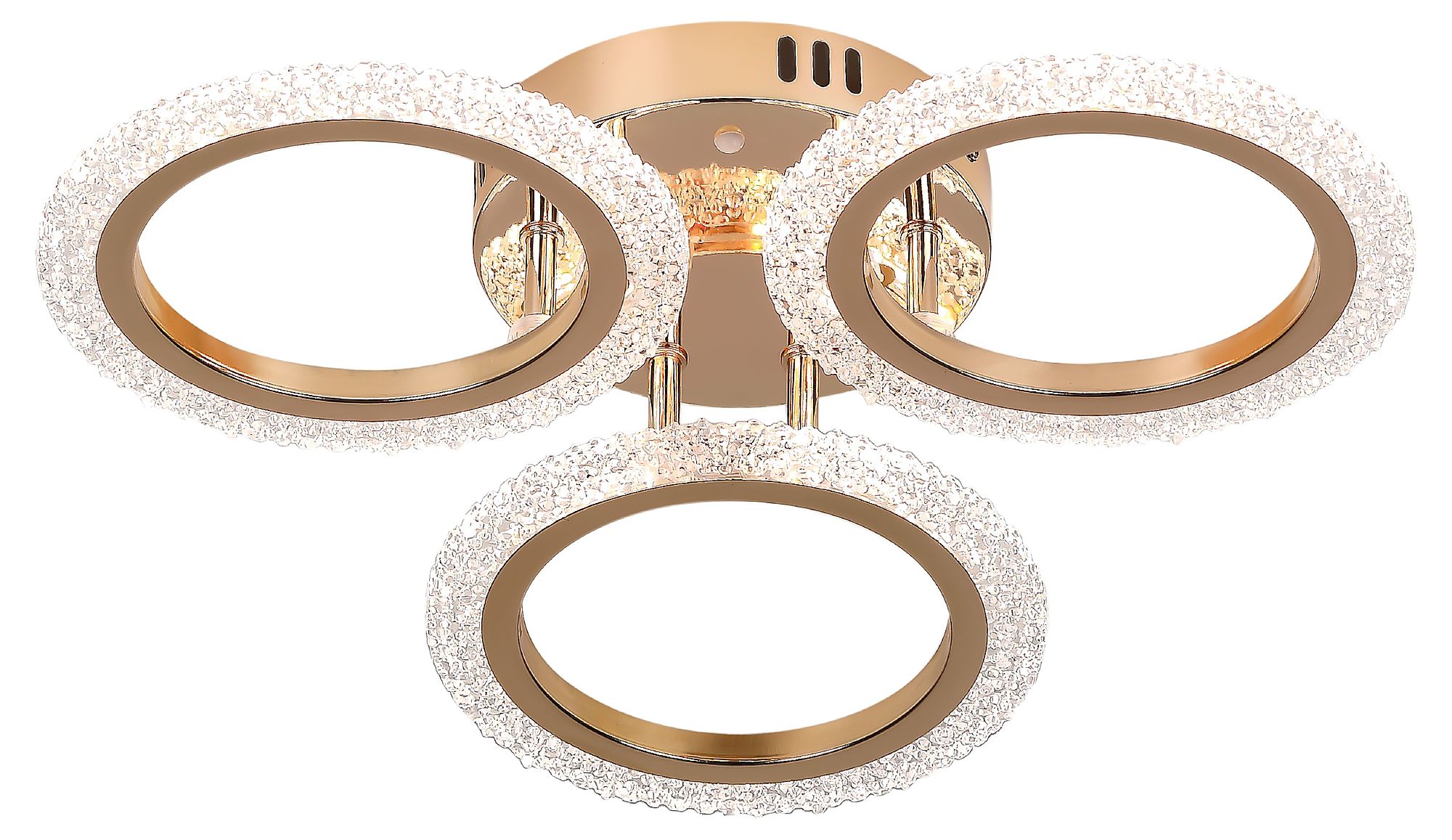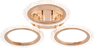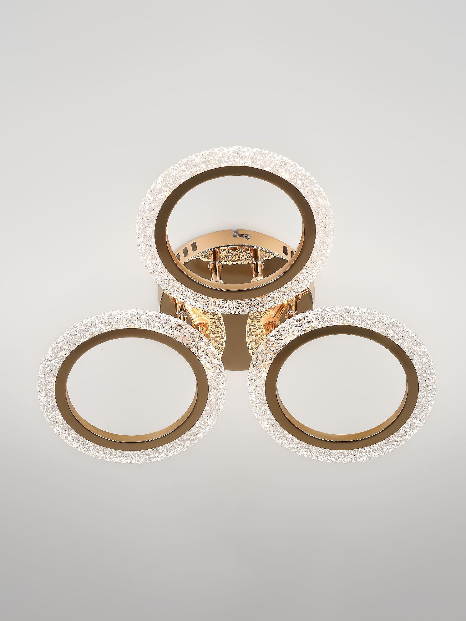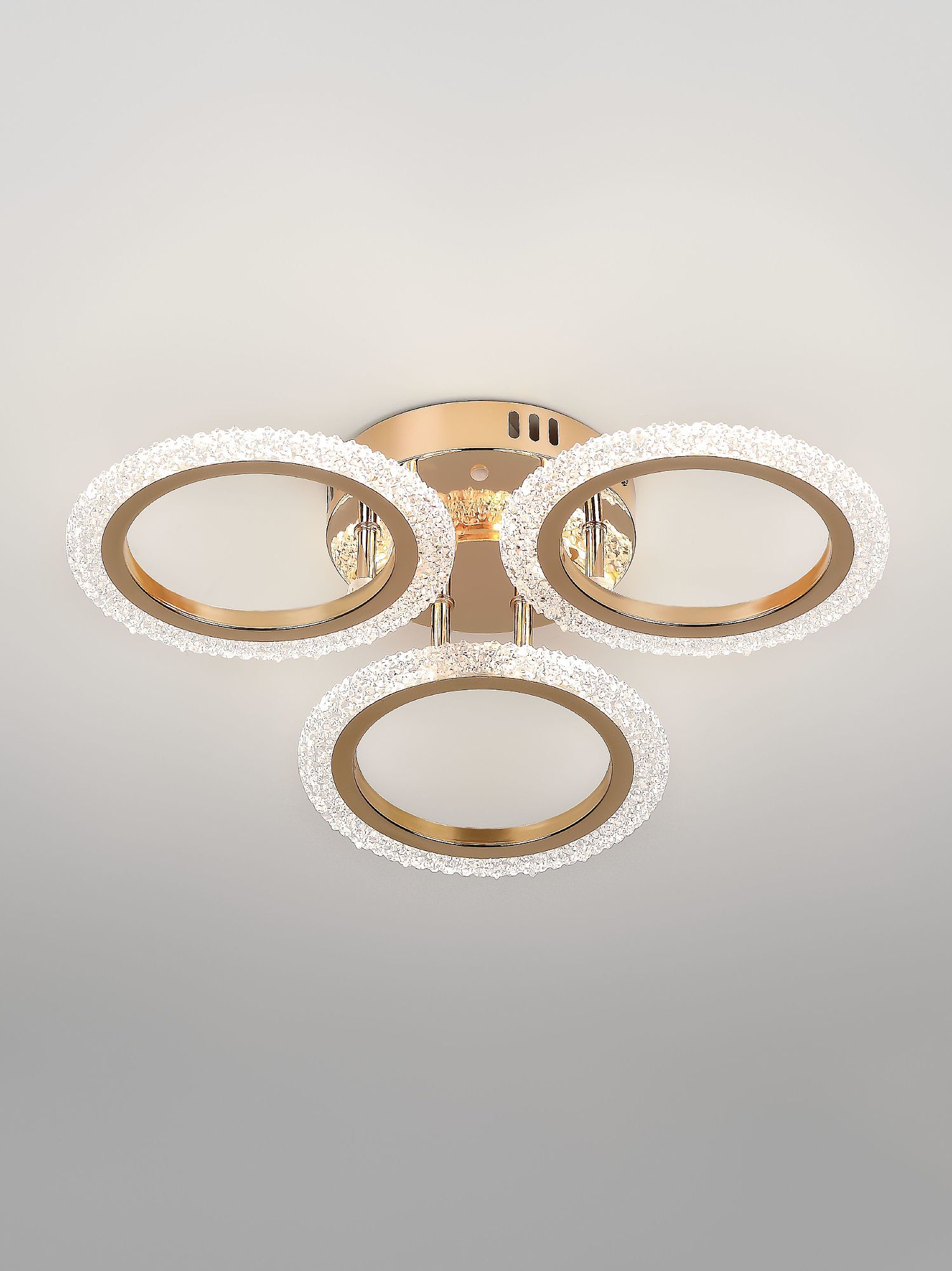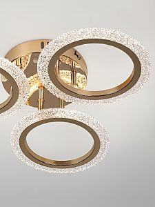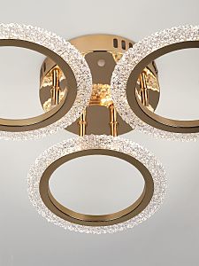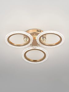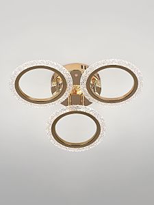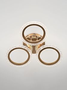 Серия потолочных светодиодных светильников в форме колец с элегантным золотым покрытием и рельефным акрилом. Оснащены пультом ДУ для регулировки яркости и режимов освещения. Мощность ? от 42 до 70 Вт. Современный дизайн и удобство управления для стильного интерьера.