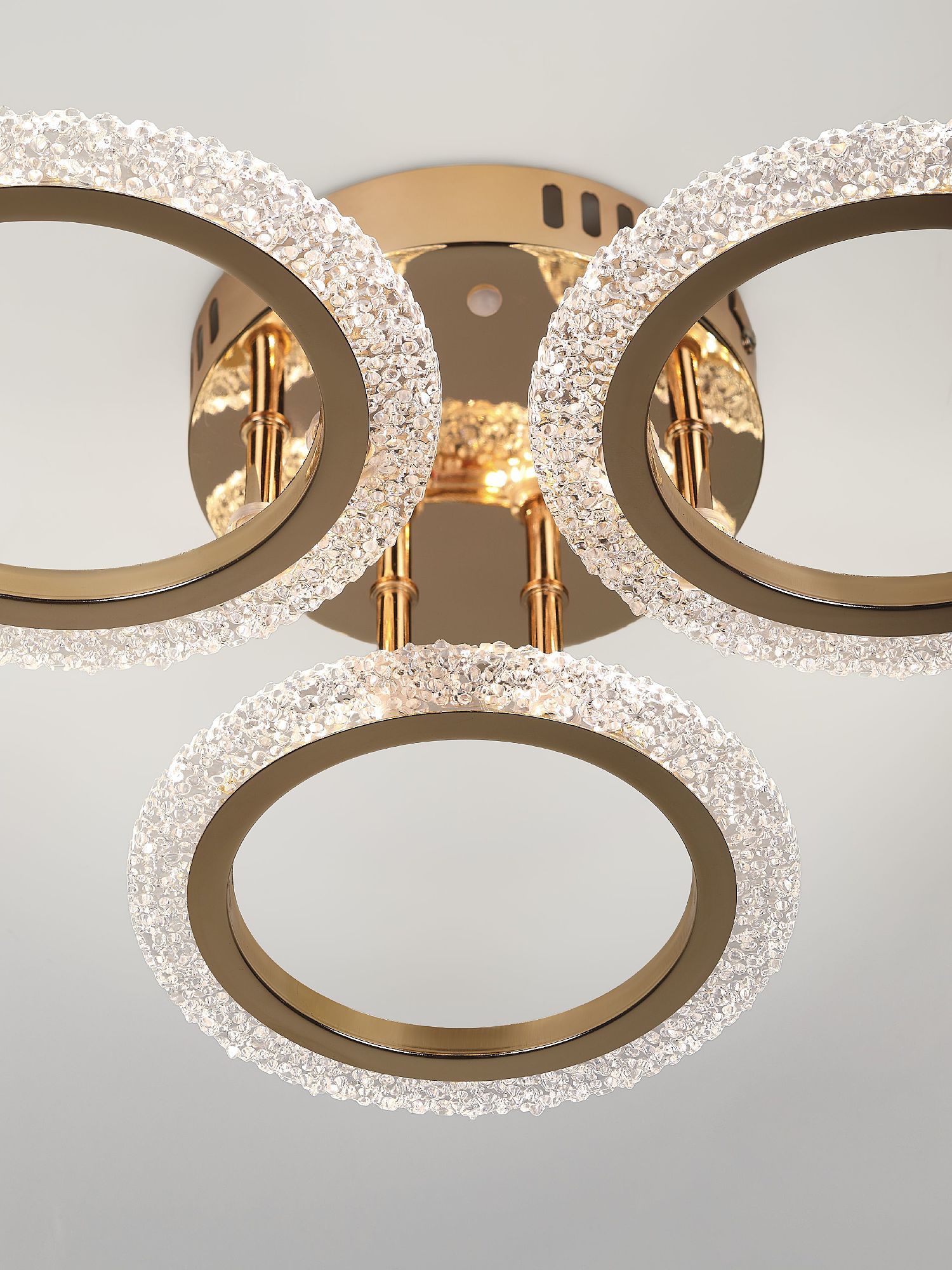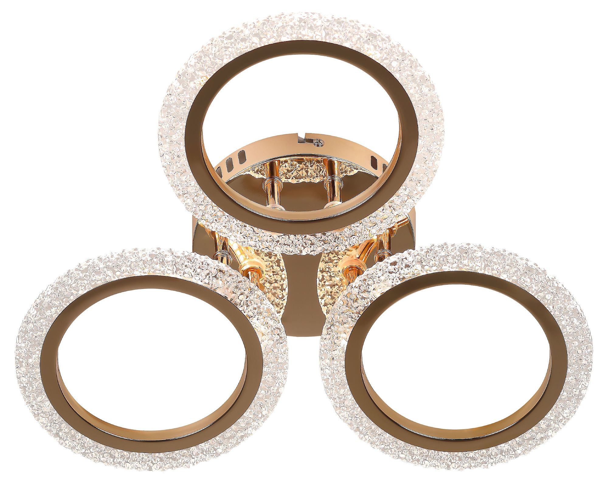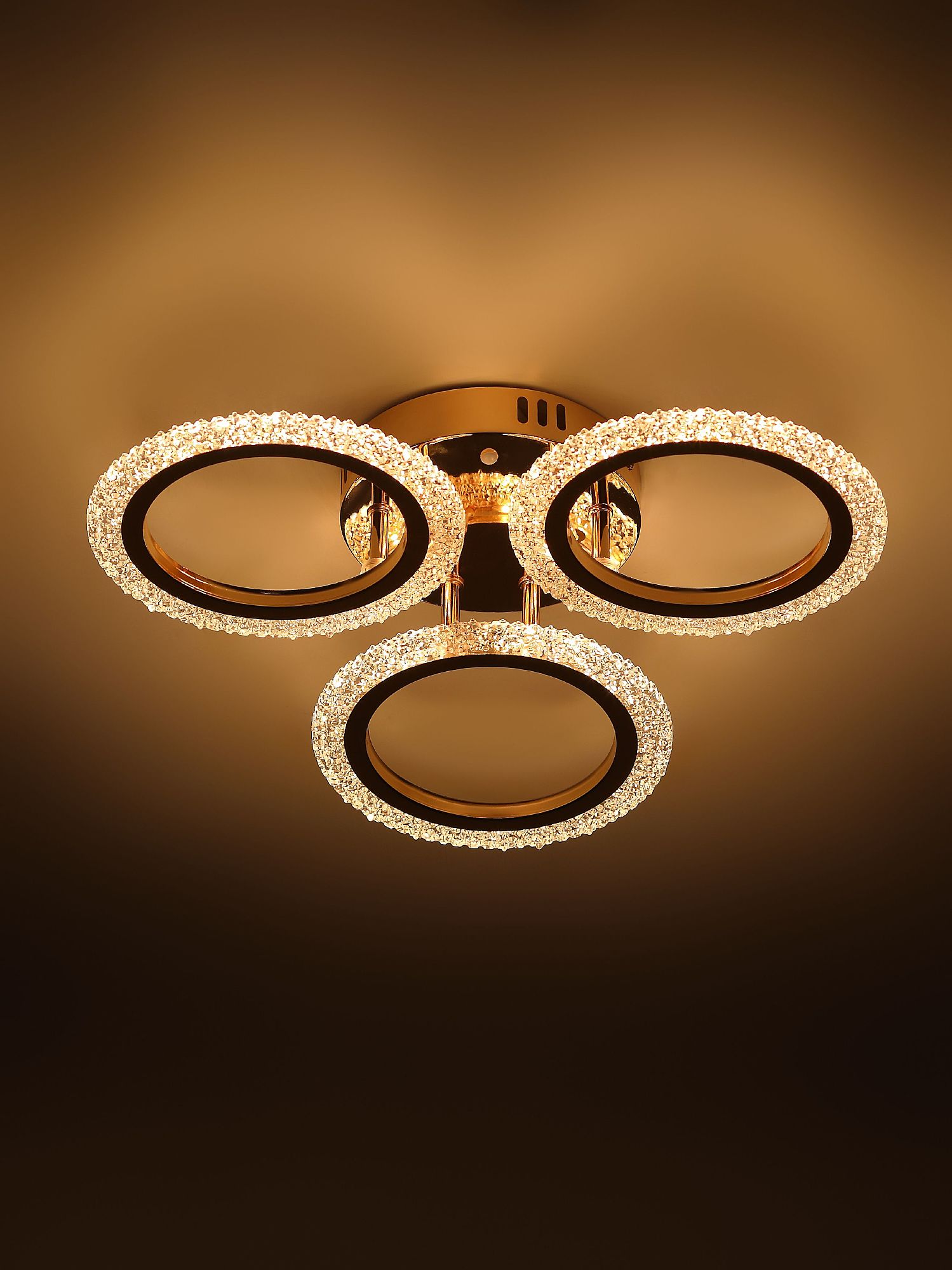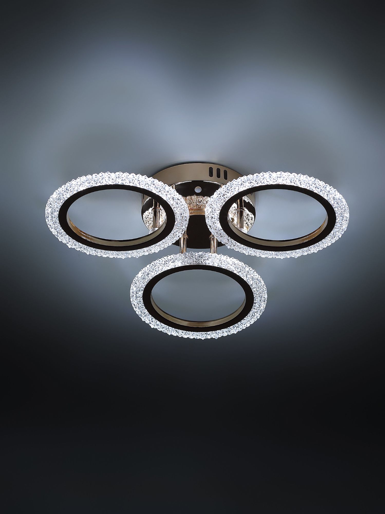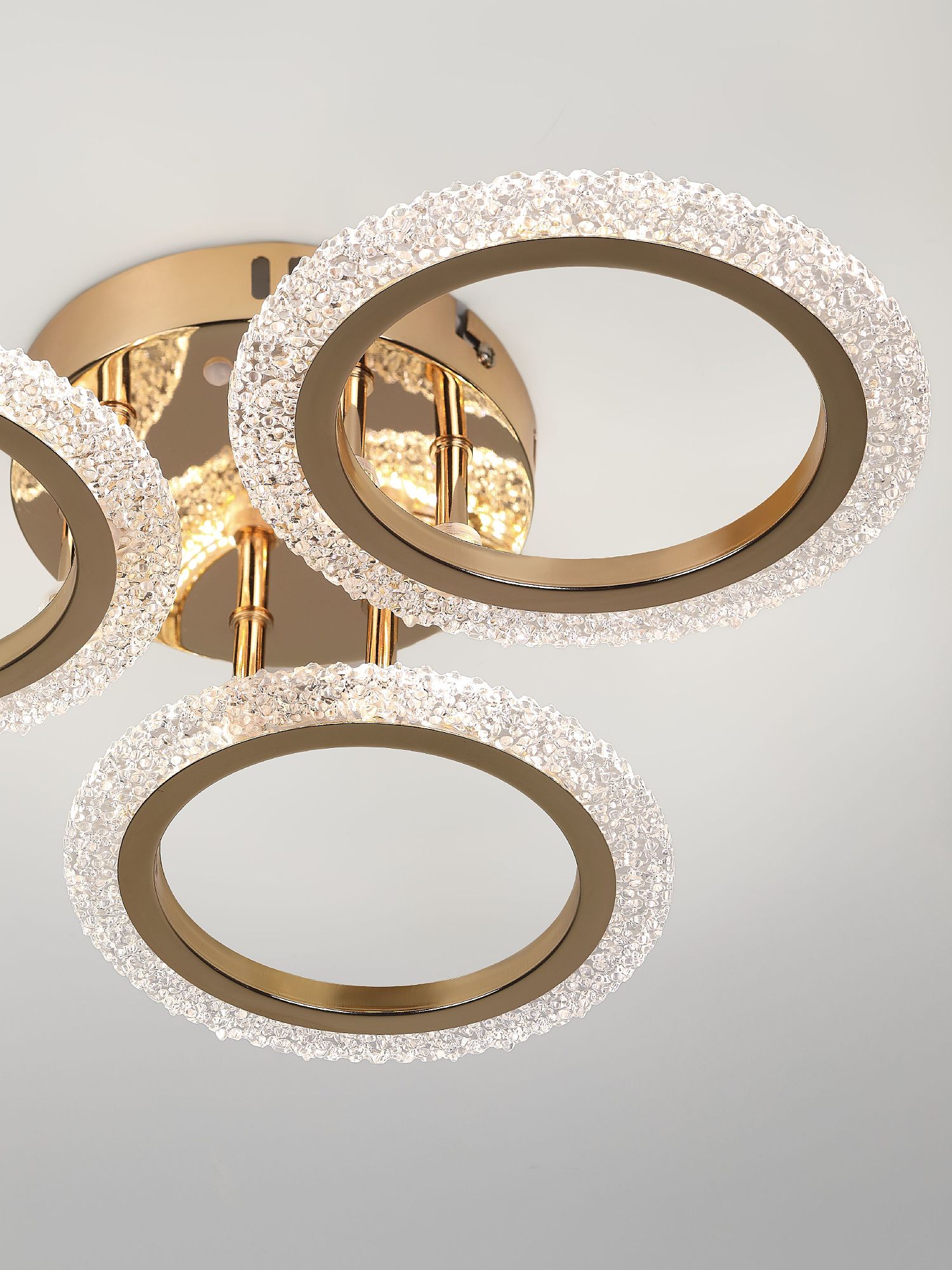 Серия потолочных светодиодных светильников в форме колец с элегантным золотым покрытием и рельефным акрилом. Оснащены пультом ДУ для регулировки яркости и режимов освещения. Мощность ? от 42 до 70 Вт. Современный дизайн и удобство управления для стильного интерьера.