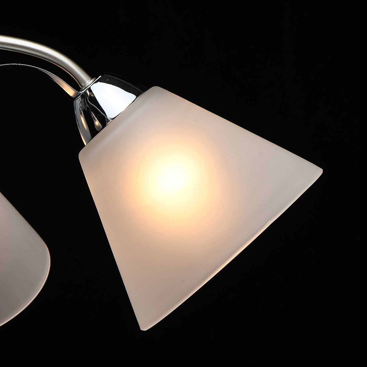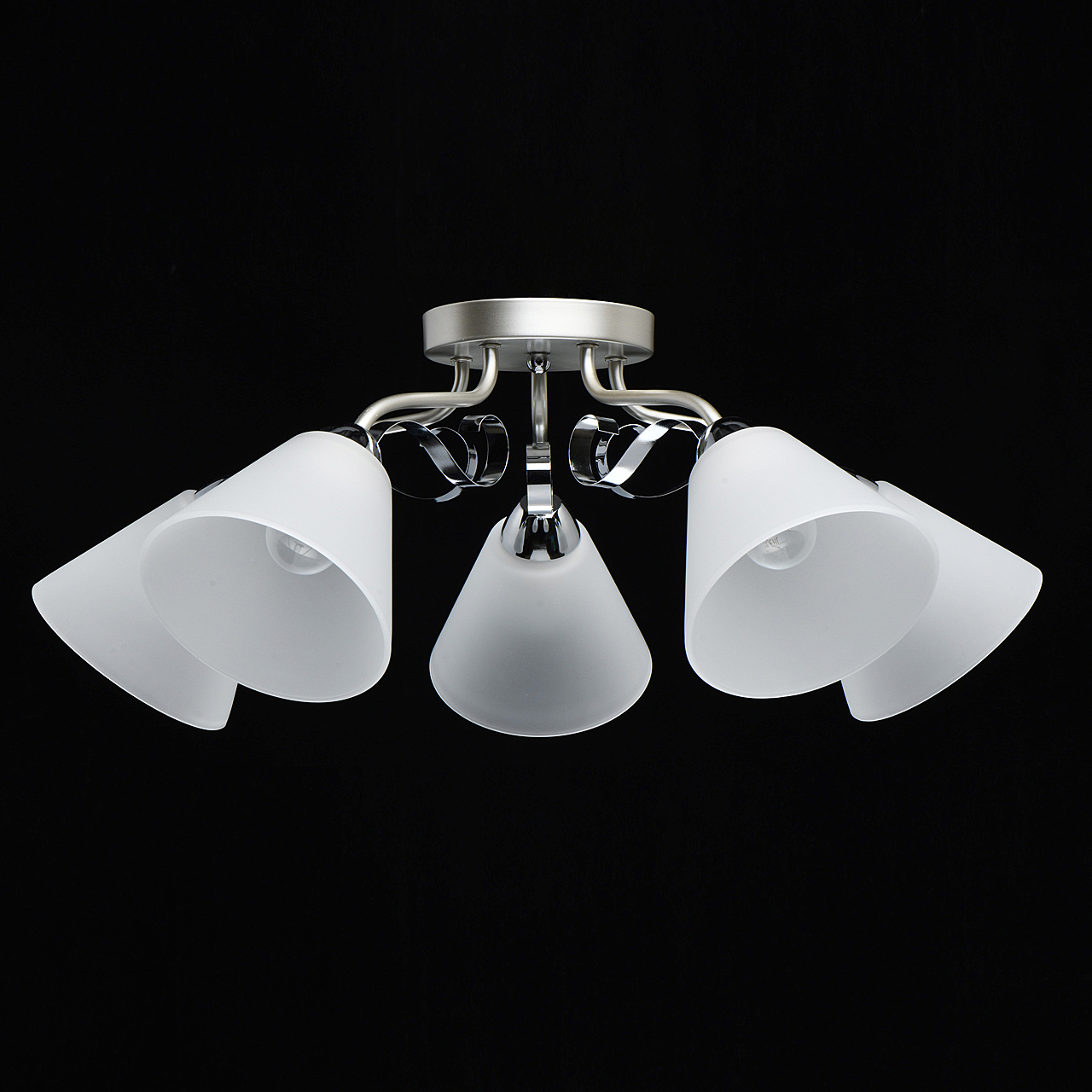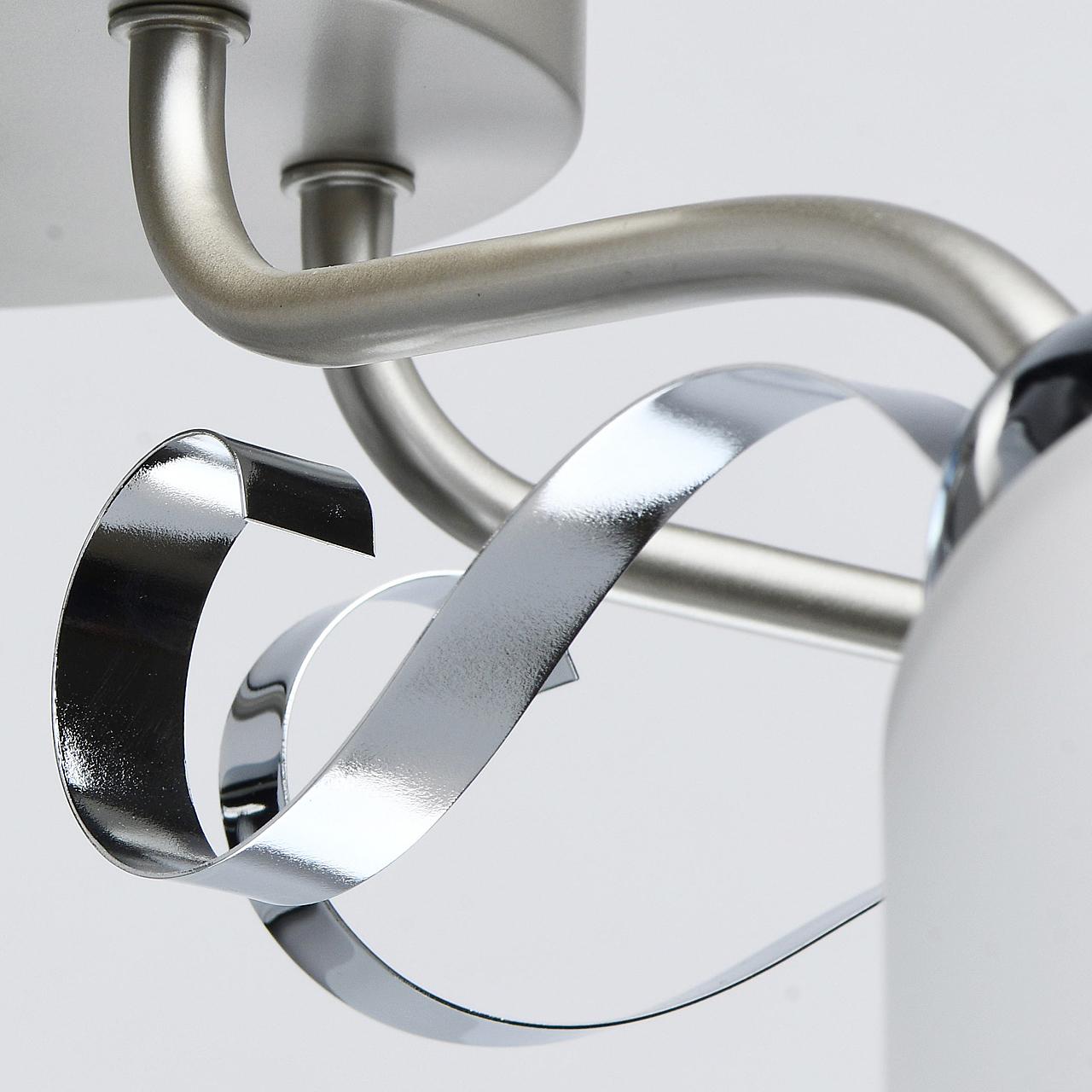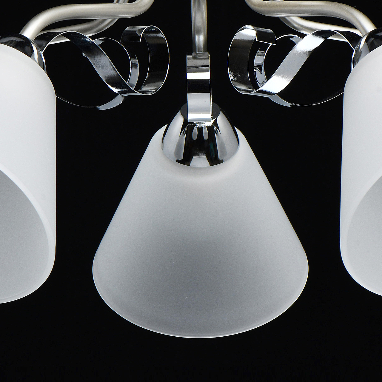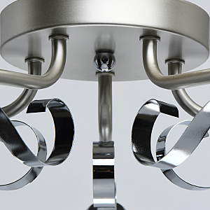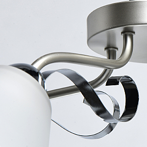 Актуальный цвет основания перламутрового серебра.Плафоны матового стекла обеспечивают мягкий световой поток.Компактная высота идеальна для стандартной высоты потолка. Широкий диаметр обеспечивает высокие параметры освещения.Металлический декор создает дополнительный акцент.
