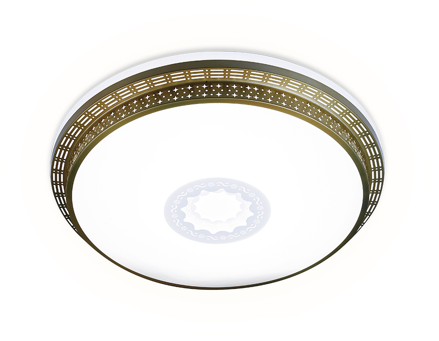 Допускается отличие страны-изготовителя, указанной в характеристиках. Линии производства могут находиться в нескольких государствах. Это не влияет на качество изготовления товара: все заводы данного бренда работают по общим стандартам, а готовые изделия проходят соответствующий контроль.Россия ЦветЦвет арматуры Белый Цвет Золото Материал арматуры Металл Цвет декора золото Цвет плафона Белый Материал декора Пластик Материал плафона Пластик РазмерыВысота (мм) 60 Диаметр (мм) 500 Ширина (мм) 500 ЭлектрикаКоличество ламп (шт) 1 Цоколь LED Цветовая температура 3000-7000 Дополнительная информацияТехническая оссобеность Ночной режим, Регулировка яркости, Регулировка цветовой температуры Тип управления Пульт ДУ -