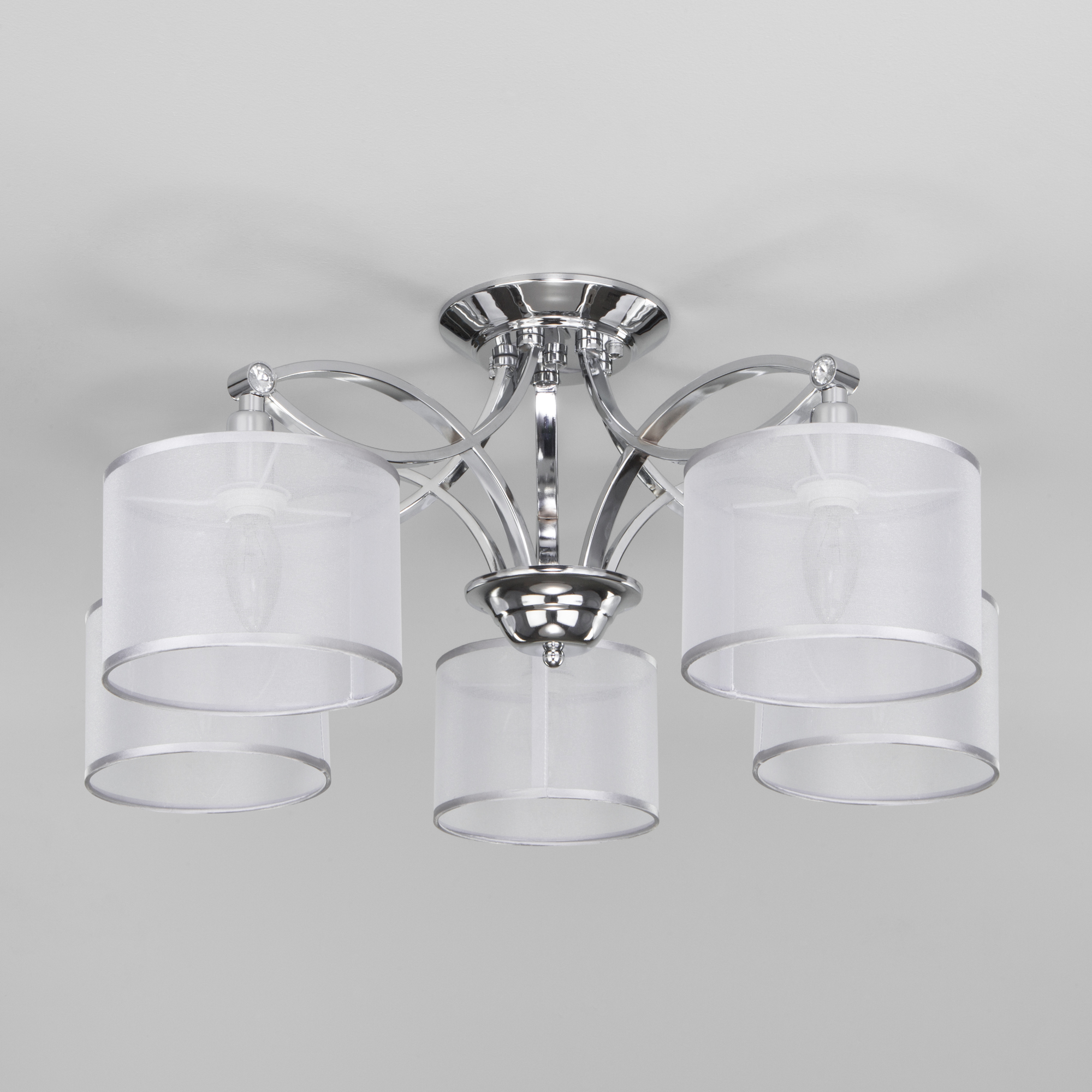 Допускается отличие страны-изготовителя, указанной в характеристиках. Линии производства могут находиться в нескольких государствах. Это не влияет на качество изготовления товара: все заводы данного бренда работают по общим стандартам, а готовые изделия проходят соответствующий контроль.Китай Коллекция Fabiola ЦветЦвет арматуры Хром Цвет Хром Материал арматуры Металл Цвет плафона серебро Материал плафона Ткань РазмерыВысота (мм) 295 Длина (мм) 700 Ширина (мм) 700 ЭлектрикаКоличество ламп (шт) 5 Цоколь E14 Мощность лампы (Вт) 40 Напряжение (В) 220 Площадь освещения 10 Дополнительная информацияСпособ крепления Планка Степень защиты (IP) IP20 Техническая оссобеность Ночной режим, Регулировка яркости, Регулировка цветовой температуры Тип управления Управление смартфоном, WI-Fi, Голосовое управление -