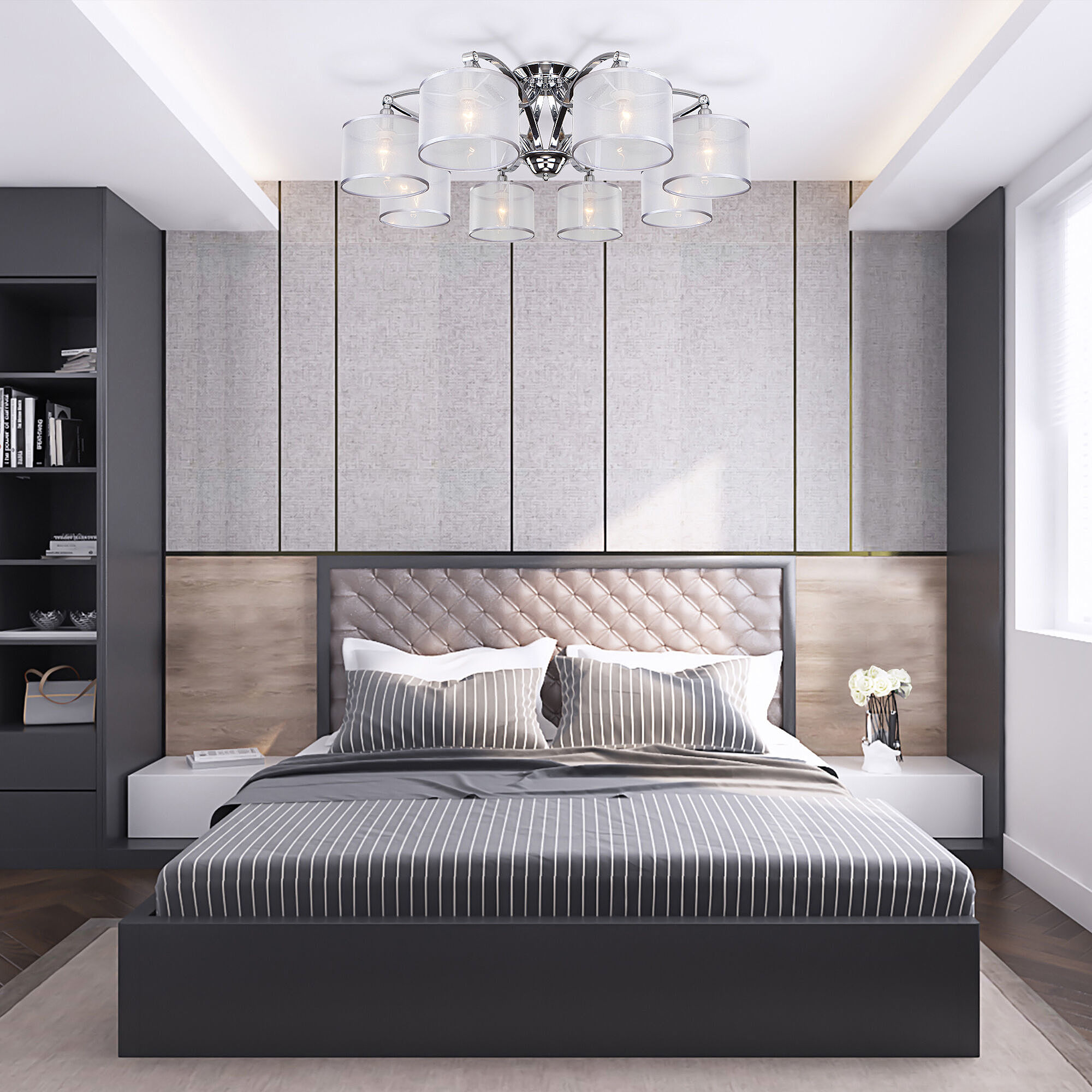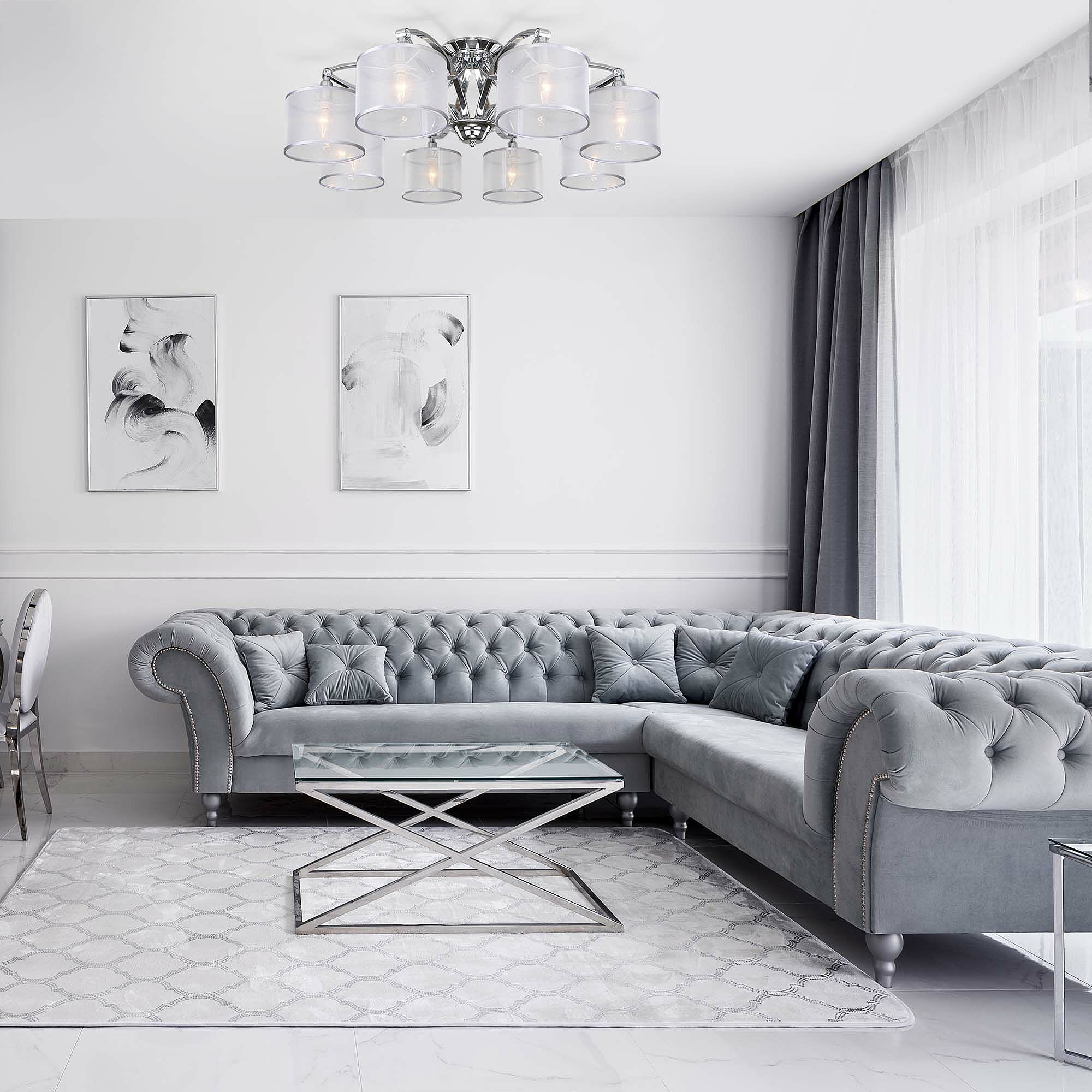 Допускается отличие страны-изготовителя, указанной в характеристиках. Линии производства могут находиться в нескольких государствах. Это не влияет на качество изготовления товара: все заводы данного бренда работают по общим стандартам, а готовые изделия проходят соответствующий контроль.Китай Коллекция Fabiola ЦветЦвет арматуры Хром Цвет Хром Материал арматуры Металл Цвет плафона серебряный Материал плафона Ткань РазмерыВысота (мм) 297 Длина (мм) 900 Ширина (мм) 900 ЭлектрикаКоличество ламп (шт) 8 Цоколь E14 Мощность лампы (Вт) 40 Напряжение (В) 220 Площадь освещения 16 Дополнительная информацияСпособ крепления Планка Степень защиты (IP) IP20 Техническая оссобеность Ночной режим, Регулировка яркости, Регулировка цветовой температуры Тип управления Управление смартфоном, WI-Fi, Голосовое управление -