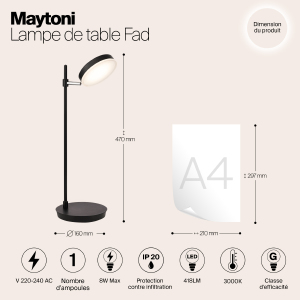 Допускается отличие страны-изготовителя, указанной в характеристиках. Линии производства могут находиться в нескольких государствах. Это не влияет на качество изготовления товара: все заводы данного бренда работают по общим стандартам, а готовые изделия проходят соответствующий контроль.Германия Коллекция Fad ЦветЦвет арматуры Черный Цвет Черный Материал арматуры Металл, Акрил Цвет плафона Черный Материал плафона Алюминий РазмерыВысота (мм) 470 Длина (мм) 194 Диаметр (мм) 194 Ширина (мм) 160 Диаметр абажура-плафона 120 Высота абажура-плафона 23 ЭлектрикаКоличество ламп (шт) 1 Цоколь LED Тип лампы Светодиодная Мощность лампы (Вт) 8 Напряжение (В) 220 Световой поток 450 Цветовая температура 3000 Дополнительная информацияСтепень защиты (IP) IP20 Тип выключателя Выключатель на шнуре Вес (Кг) 1,16 Техническая оссобеность Полностью светодиодная, Регулируемая по наклону -