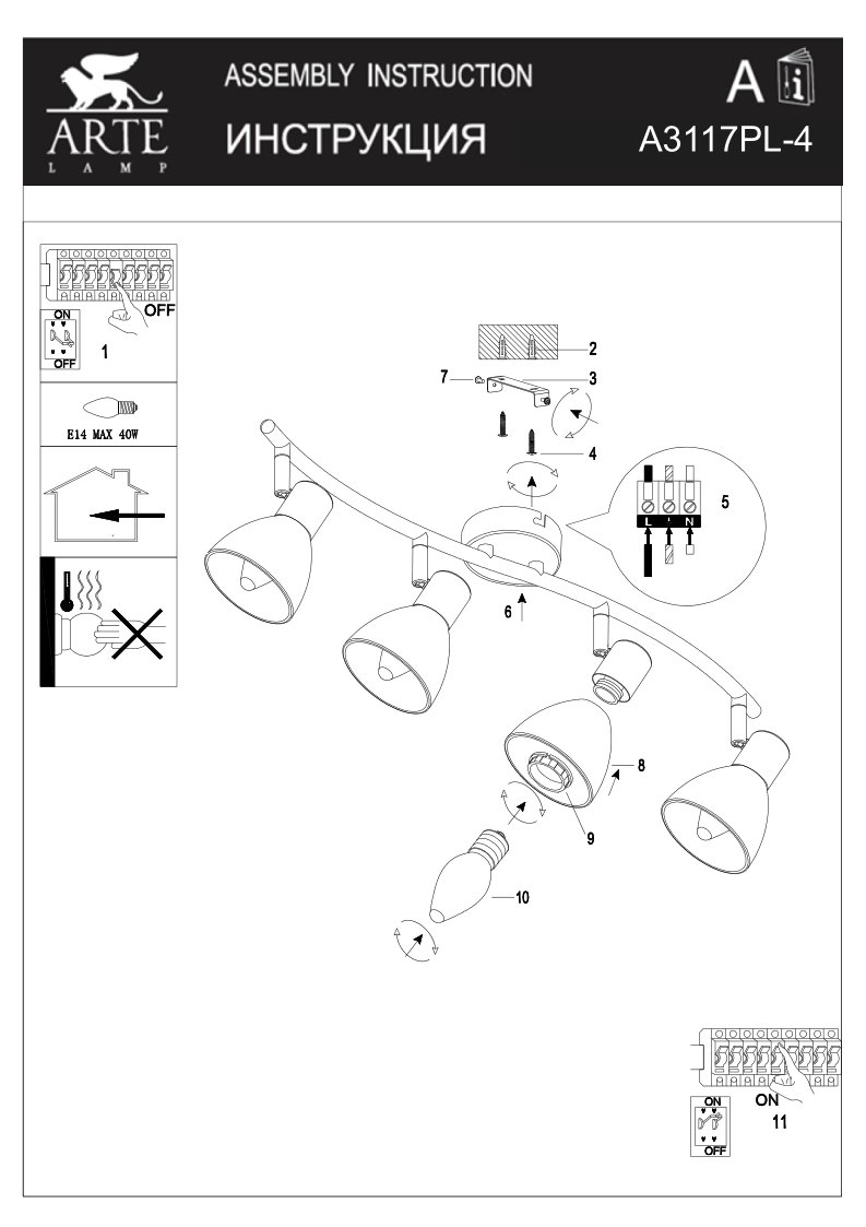 | Мощность лампы (Вт) | 40 |