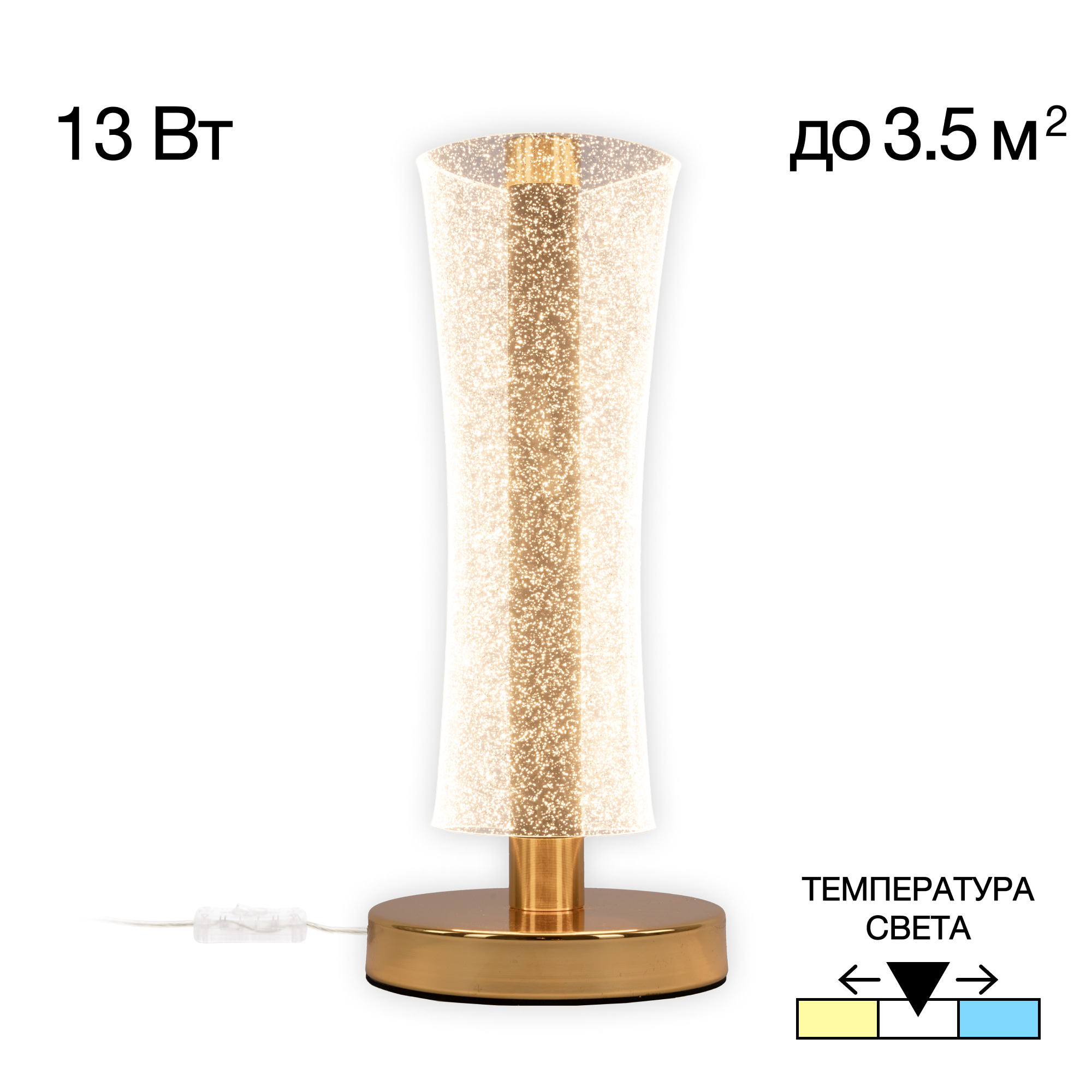 Допускается отличие страны-изготовителя, указанной в характеристиках. Линии производства могут находиться в нескольких государствах. Это не влияет на качество изготовления товара: все заводы данного бренда работают по общим стандартам, а готовые изделия проходят соответствующий контроль.Дания Коллекция Fanny ЦветЦвет арматуры Золото, графит Цвет Золото Материал арматуры Металл Цвет плафона прозрачный Материал плафона Оптический полимер РазмерыВысота (мм) 350 Диаметр (мм) 150 ЭлектрикаКоличество ламп (шт) 1 Цоколь LED Тип лампы Светодиодная Мощность лампы (Вт) 13 Общая мощность (Вт) 13 Световой поток 900 Цветовая температура 3000-6000 Дополнительная информацияСтепень защиты (IP) IP20 Тип выключателя Выключатель на шнуре Техническая оссобеность Регулировка яркости, Полностью светодиодная, Регулировка цветовой температуры -