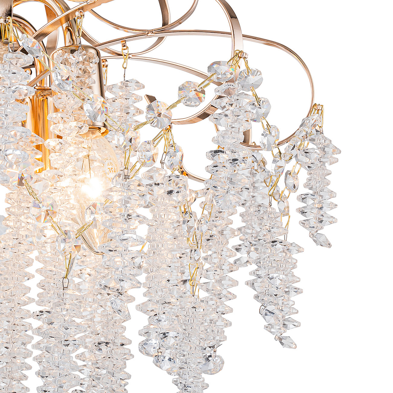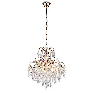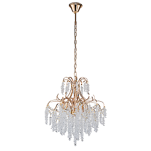 Подвесной светильник 5х40Вт E14, металл/хрусталь, золото/прозрачный