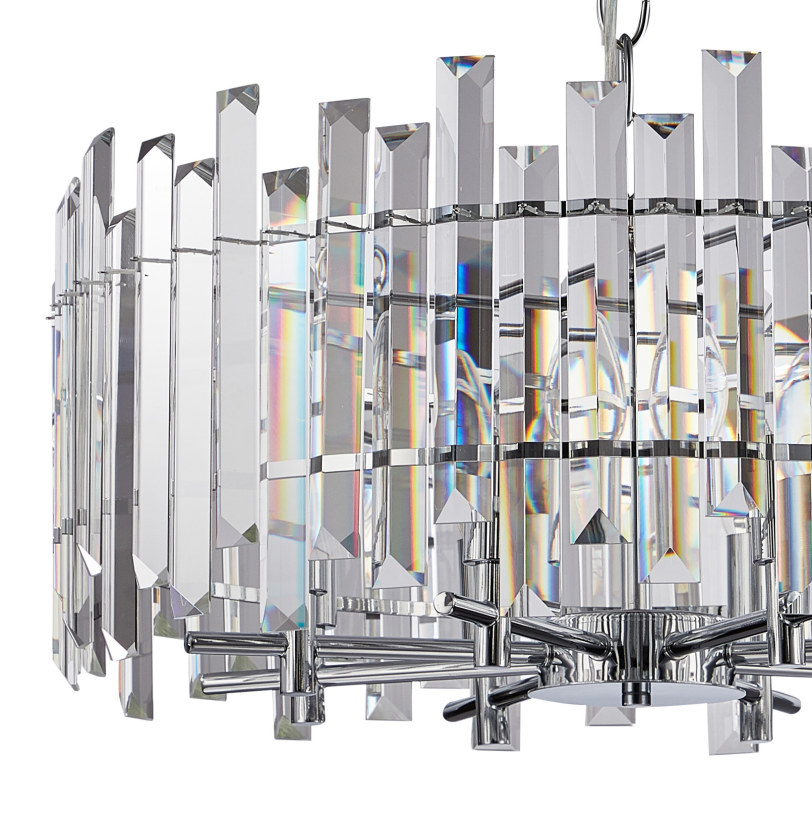 Люстра подвесная из коллекции Feeriya выполнена из металла, гальванизированного в цвет хрома, и декорирована хрусталем высшей категории прямоугольной формы разных размеров. Изящное преломление света в хрустале придает светильнику индивидуальность. Современная форма и высокое качество светильников идеально подойдут как в классические, так и современные интерьеры.