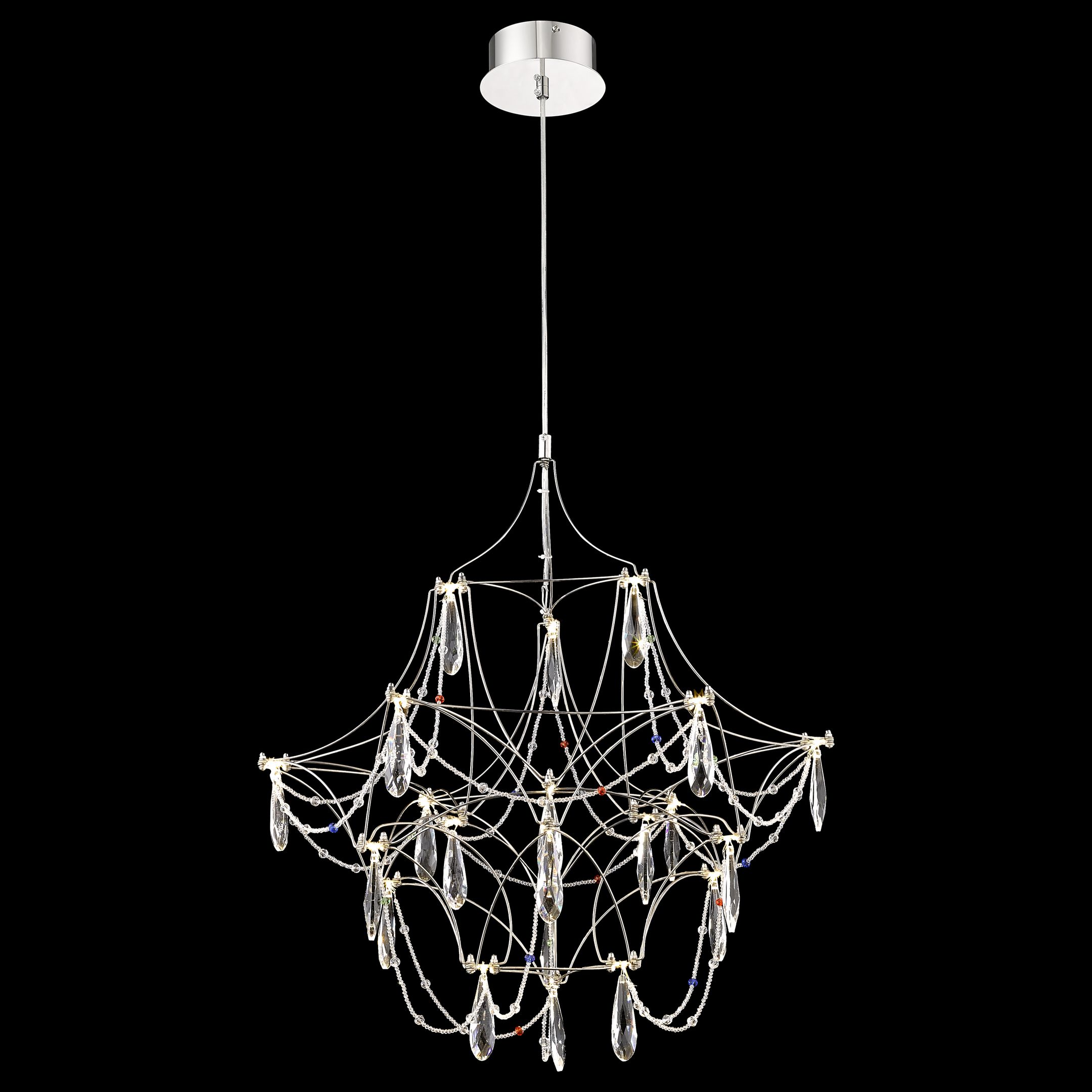 Допускается отличие страны-изготовителя, указанной в характеристиках. Линии производства могут находиться в нескольких государствах. Это не влияет на качество изготовления товара: все заводы данного бренда работают по общим стандартам, а готовые изделия проходят соответствующий контроль.Италия Коллекция Felicia ЦветЦвет арматуры Хром Цвет Хром Материал арматуры Металл Цвет плафона прозрачный Материал плафона Хрусталь РазмерыВысота (мм) 1110 Длина (мм) 600 Диаметр (мм) 600 Высота минимальная (мм) 700 Ширина (мм) 600 ЭлектрикаКоличество ламп (шт) 21 Цоколь LED Мощность лампы (Вт) 1 Напряжение (В) 220 Цветовая температура 3000 Площадь освещения 7 Дополнительная информацияСпособ крепления Планка Степень защиты (IP) IP20 Тип подвеса На тросах -