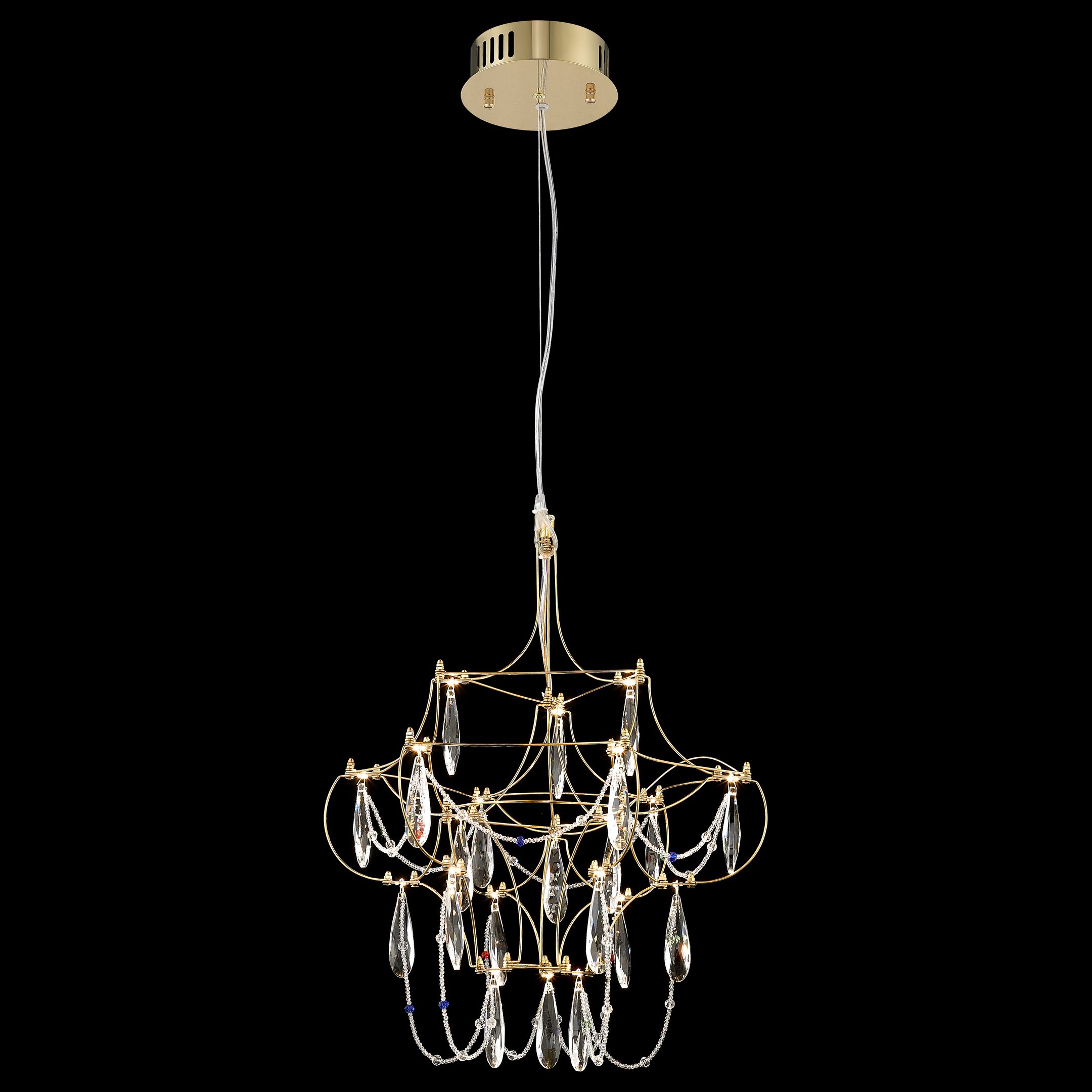 Допускается отличие страны-изготовителя, указанной в характеристиках. Линии производства могут находиться в нескольких государствах. Это не влияет на качество изготовления товара: все заводы данного бренда работают по общим стандартам, а готовые изделия проходят соответствующий контроль.Италия Коллекция Felicia ЦветЦвет арматуры Золото Цвет Золото Материал арматуры Металл Цвет плафона прозрачный Материал плафона Хрусталь РазмерыВысота (мм) 1110 Длина (мм) 400 Диаметр (мм) 400 Высота минимальная (мм) 560 Ширина (мм) 400 ЭлектрикаКоличество ламп (шт) 21 Цоколь LED Тип лампы Светодиодная Лампочки в комплекте Лампы в комплекте Мощность лампы (Вт) 1 Напряжение (В) 220 Цветовая температура 3000 Площадь освещения 7 Дополнительная информацияСпособ крепления Планка Степень защиты (IP) IP20 Тип подвеса На тросах -