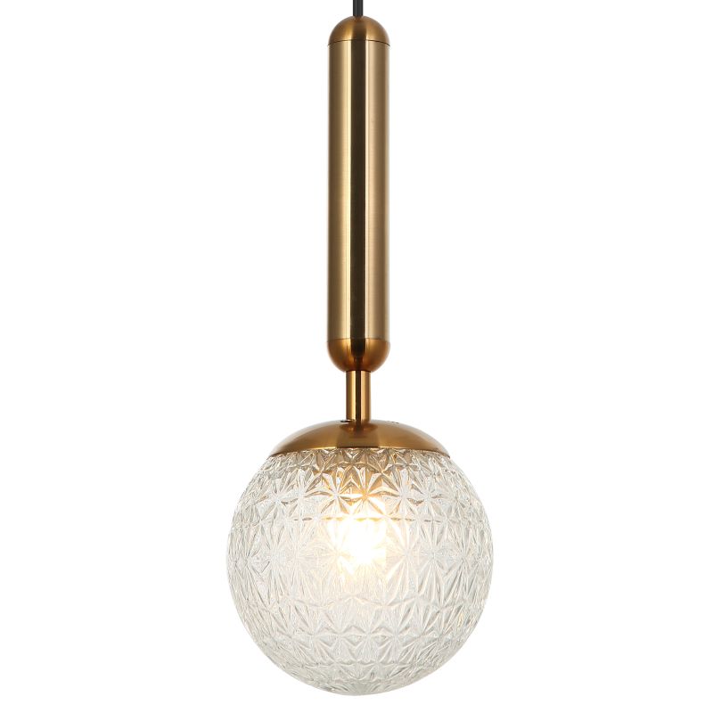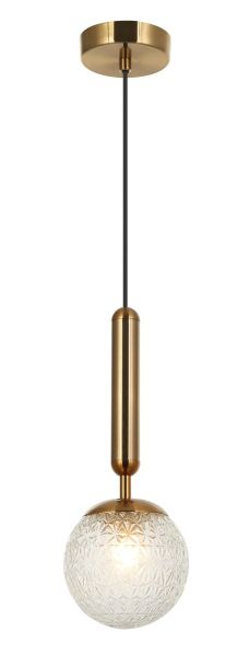 Светильник подвесной из коллекции Felis выполнен из металла, гальванизированного в цвет бронзы, и декорирован плафоном из фактурного прозрачного стекла. На подвесе дополнительно используется металлический декоративный элемент, гальванизированный в цвет арматуры. Премиальное качество и неповторимыи? дизаи?н светильников идеально подои?дут в современные дизайнерские интерьеры.