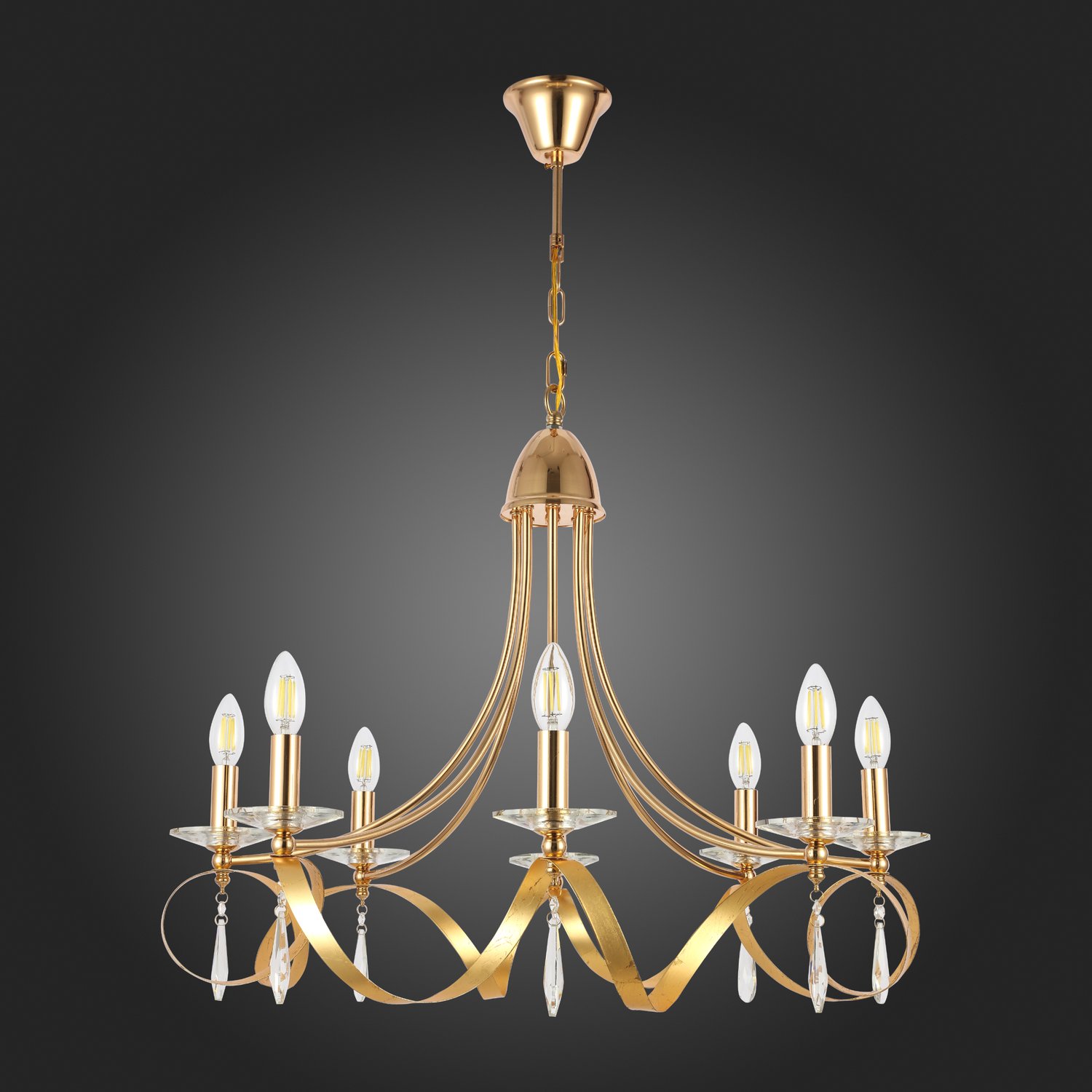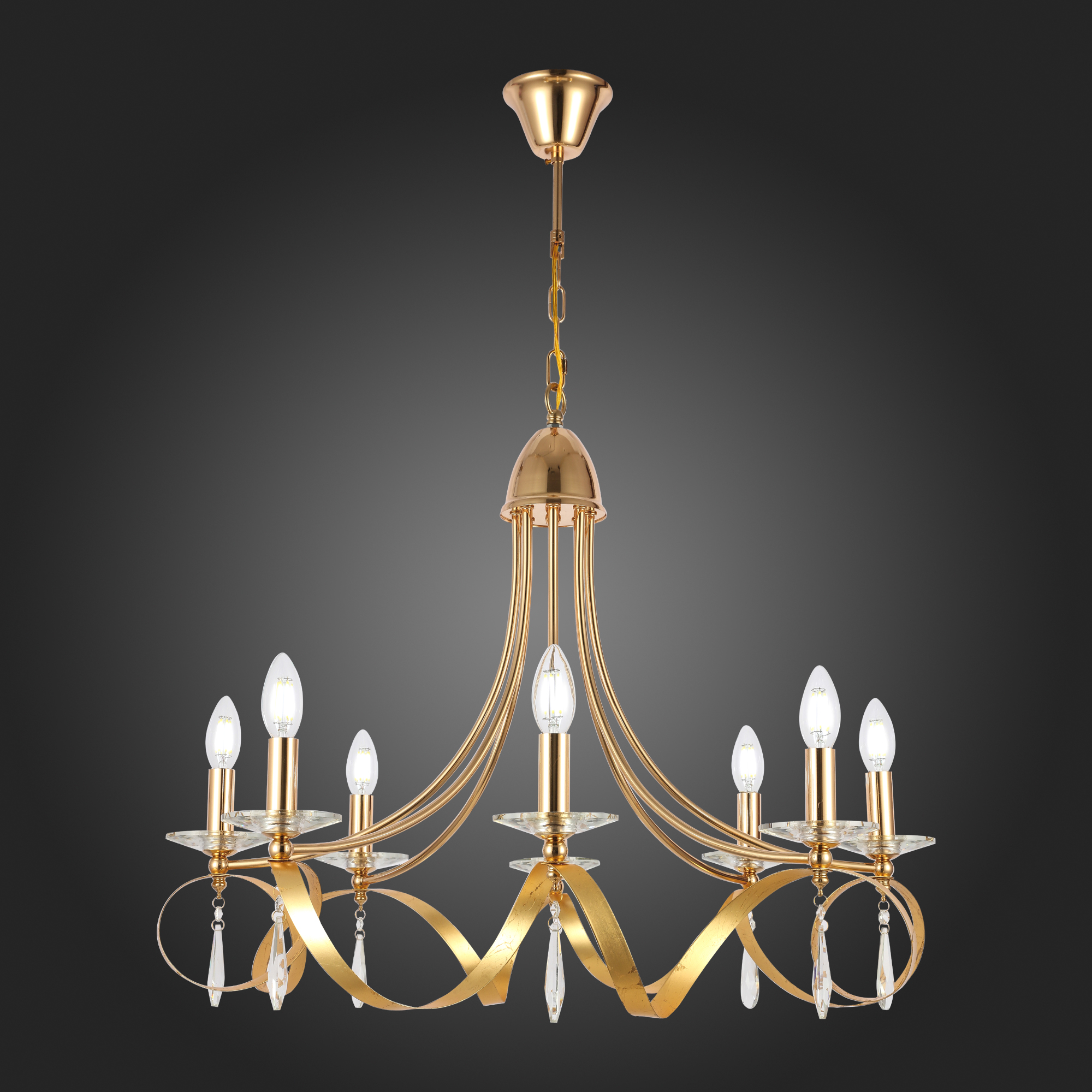 Допускается отличие страны-изготовителя, указанной в характеристиках. Линии производства могут находиться в нескольких государствах. Это не влияет на качество изготовления товара: все заводы данного бренда работают по общим стандартам, а готовые изделия проходят соответствующий контроль.Италия Коллекция Filatta ЦветЦвет арматуры французское золото Цвет Золото Материал арматуры Металл РазмерыВысота (мм) 580 Диаметр (мм) 770 Ширина (мм) 770 ЭлектрикаКоличество ламп (шт) 8 Цоколь E14 Тип лампы Накаливания Мощность лампы (Вт) 40 Общая мощность (Вт) 320 Напряжение (В) 220 Площадь освещения 16 Дополнительная информацияСпособ крепления Крюк Вес (Кг) 4,5 Тип подвеса На цепи -