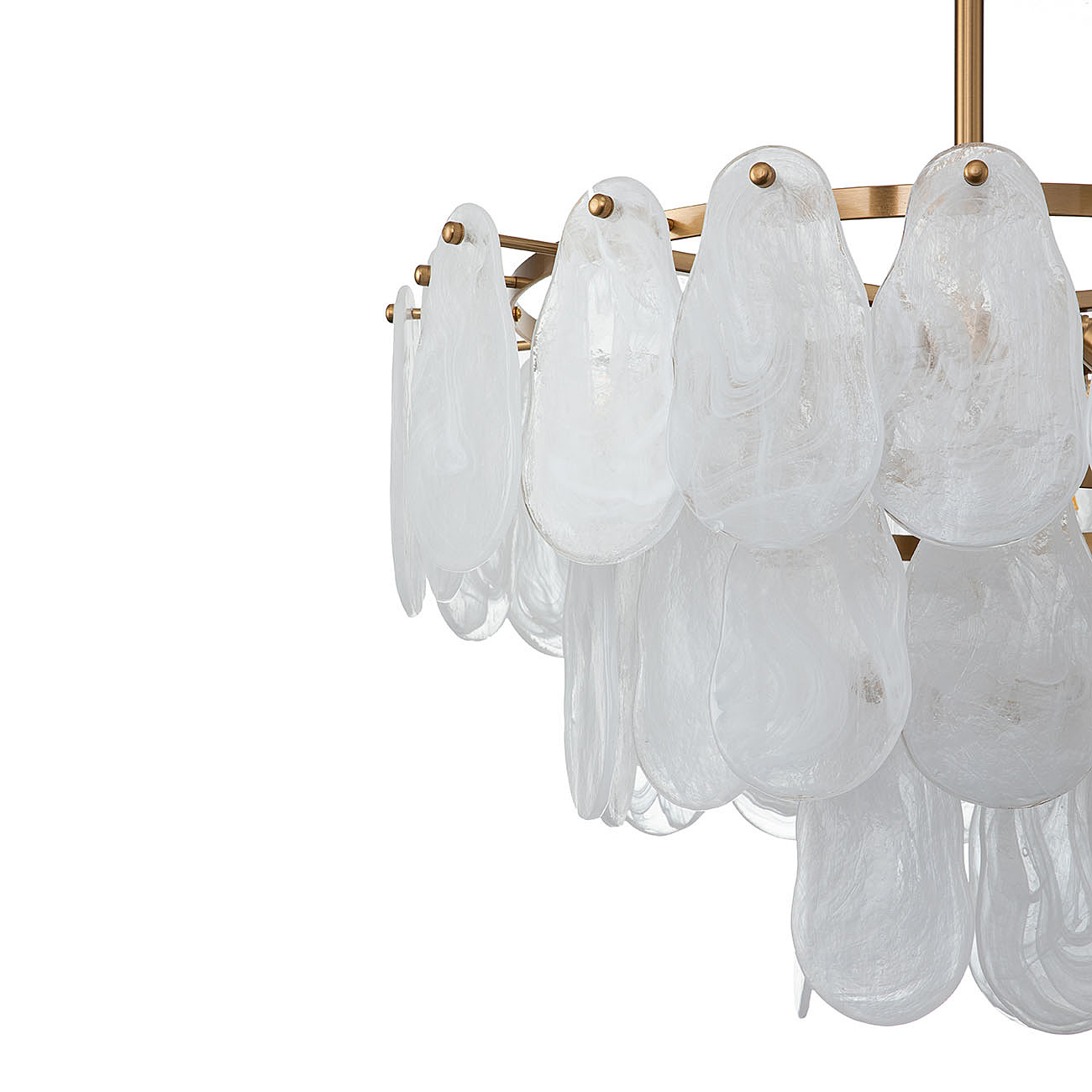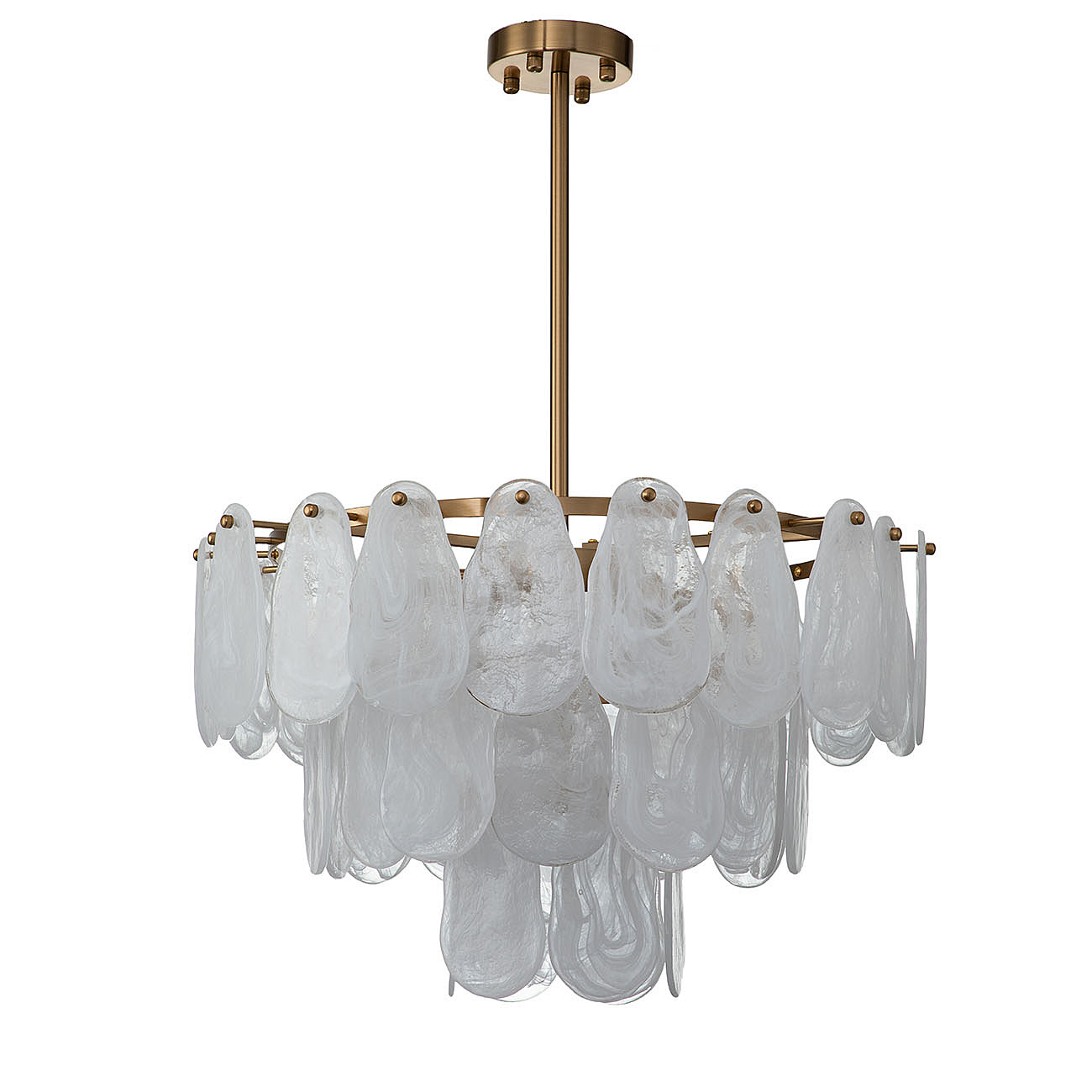 Словно Снежная королева спустилась на крыльях зимы, расписав сказочными ледяными узорами латунную арматуру светильников серии Fiocchi. Создается впечатление, что люстры украшены ничем иным, как сверкающими и кристально чистыми осколками льда, которые ослепляют своим великолепием. И все вокруг мерцает и блестит отголосками зимней красоты. Размер 600*600*375/1375 МощностьE14 60W х 6 Цвет ЛАТУНЬ/МАТТОВЫЙ С ЭФФЕКТОМ ЛЬДА Материал МЕТАЛЛ/СТЕКЛО