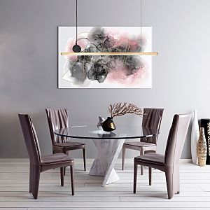 каркас цвета золота, рассеиватель из белого акрила, круглый декоративный элемент черного цвета, часть каркаса фиксируется тросиком для баланса