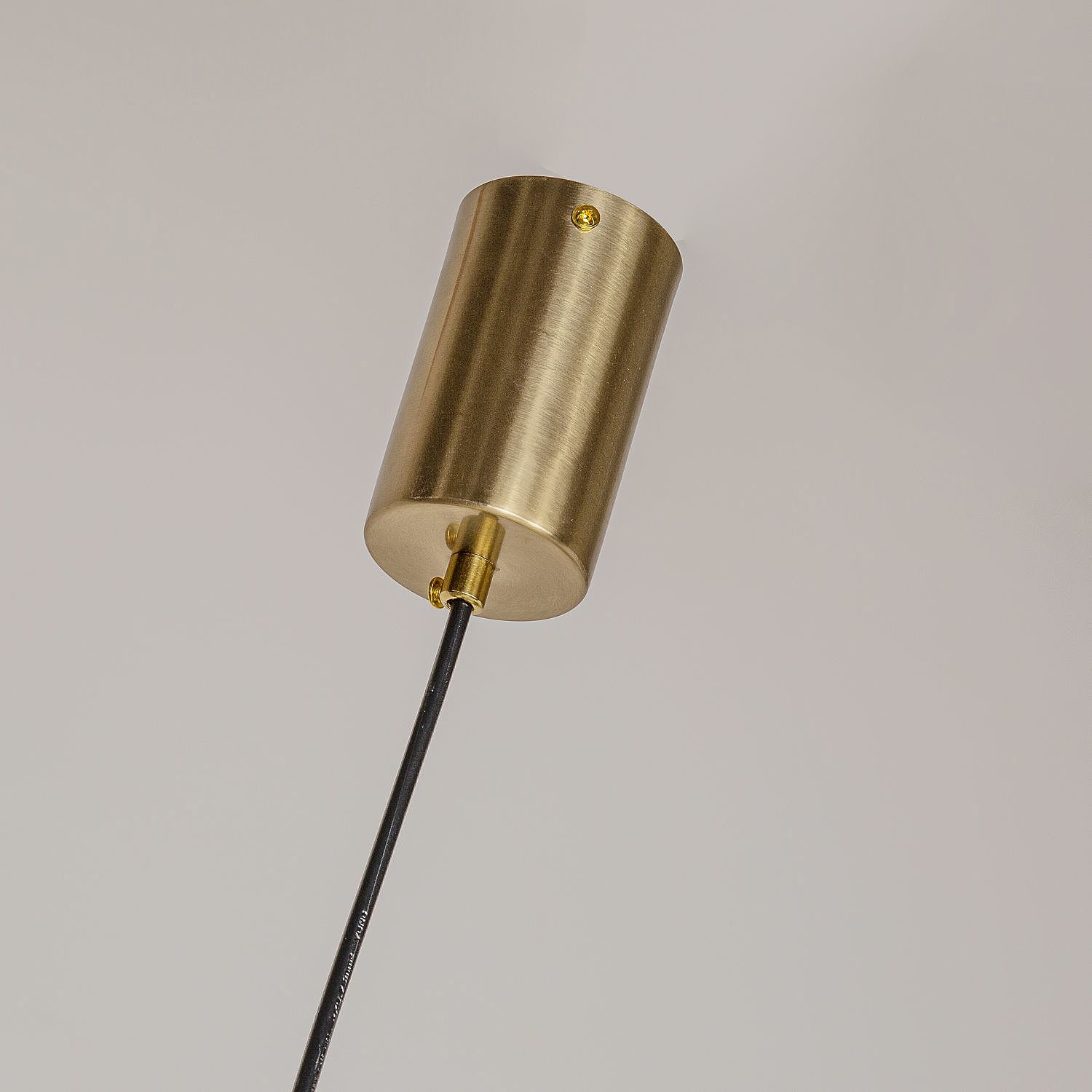 каркас цвета золота, рассеиватель из белого акрила, круглый декоративный элемент черного цвета, часть каркаса фиксируется тросиком для баланса