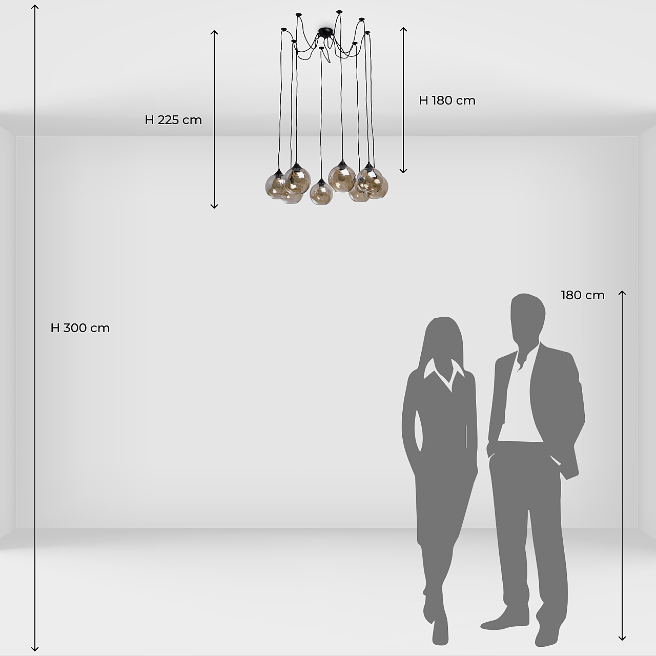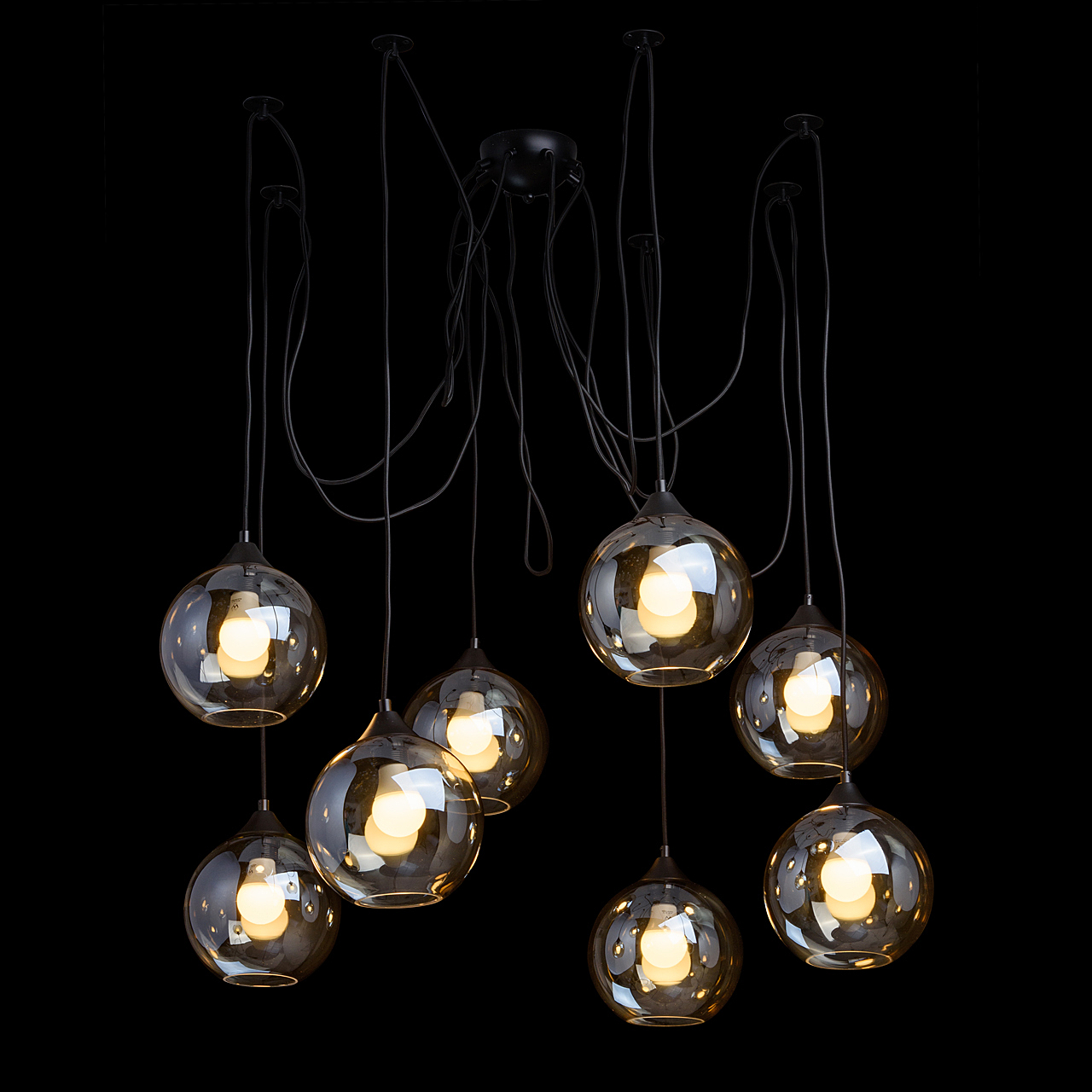 Допускается отличие страны-изготовителя, указанной в характеристиках. Линии производства могут находиться в нескольких государствах. Это не влияет на качество изготовления товара: все заводы данного бренда работают по общим стандартам, а готовые изделия проходят соответствующий контроль.Германия Коллекция Фьюжен ЦветЦвет арматуры Черный Цвет Черный Материал арматуры Металл Цвет плафона шампань Материал плафона Стекло РазмерыВысота (мм) 2250 Высота минимальная (мм) 450 ЭлектрикаКоличество ламп (шт) 8 Цоколь E27 Мощность лампы (Вт) 40W Напряжение (В) 220 Дополнительная информацияСтепень защиты (IP) IP20 Вес (Кг) 6 Тип подвеса На тросах Количество подвесов Много подвесных элементов -