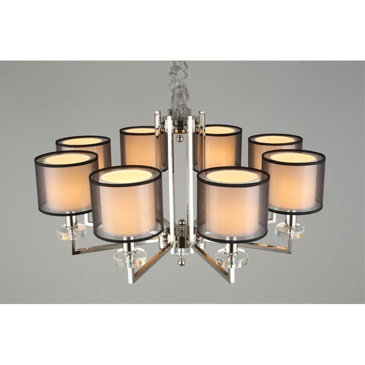 Допускается отличие страны-изготовителя, указанной в характеристиках. Линии производства могут находиться в нескольких государствах. Это не влияет на качество изготовления товара: все заводы данного бренда работают по общим стандартам, а готовые изделия проходят соответствующий контроль.Польша Коллекция Flavi ЦветЦвет арматуры Хром Цвет Хром Материал арматуры Металл Цвет декора прозрачный Цвет плафона Белый, Черный Материал декора Хрусталь Материал плафона Пластик, Ткань РазмерыВысота (мм) 1400 Диаметр (мм) 780 Высота минимальная (мм) 650 Ширина (мм) 780 ЭлектрикаКоличество ламп (шт) 8 Цоколь E14 Лампочки в комплекте Нет в комплекте Мощность лампы (Вт) 40 Общая мощность (Вт) 320 Световой поток 3360 Дополнительная информацияСпособ крепления Крюк Вес (Кг) 7.2 Тип подвеса На цепи -