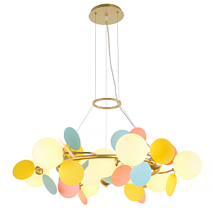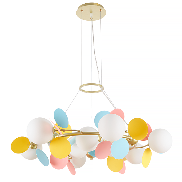 Допускается отличие страны-изготовителя, указанной в характеристиках. Линии производства могут находиться в нескольких государствах. Это не влияет на качество изготовления товара: все заводы данного бренда работают по общим стандартам, а готовые изделия проходят соответствующий контроль.Россия Коллекция Flavia ЦветЦвет арматуры золотой Цвет Разноцветные Материал арматуры Металл Цвет плафона Белый Материал плафона Стекло РазмерыВысота (мм) 1000 Длина (мм) 800 Диаметр (мм) 800 Высота минимальная (мм) 220 Ширина (мм) 800 ЭлектрикаКоличество ламп (шт) 9 Цоколь G9 Лампочки в комплекте Нет в комплекте Мощность лампы (Вт) 40 Общая мощность (Вт) 360 Напряжение (В) 220 Площадь освещения 15 Дополнительная информацияСпособ крепления Планка Степень защиты (IP) IP20 Тип подвеса На тросах -
