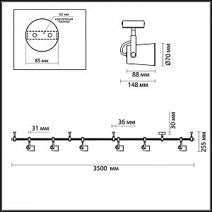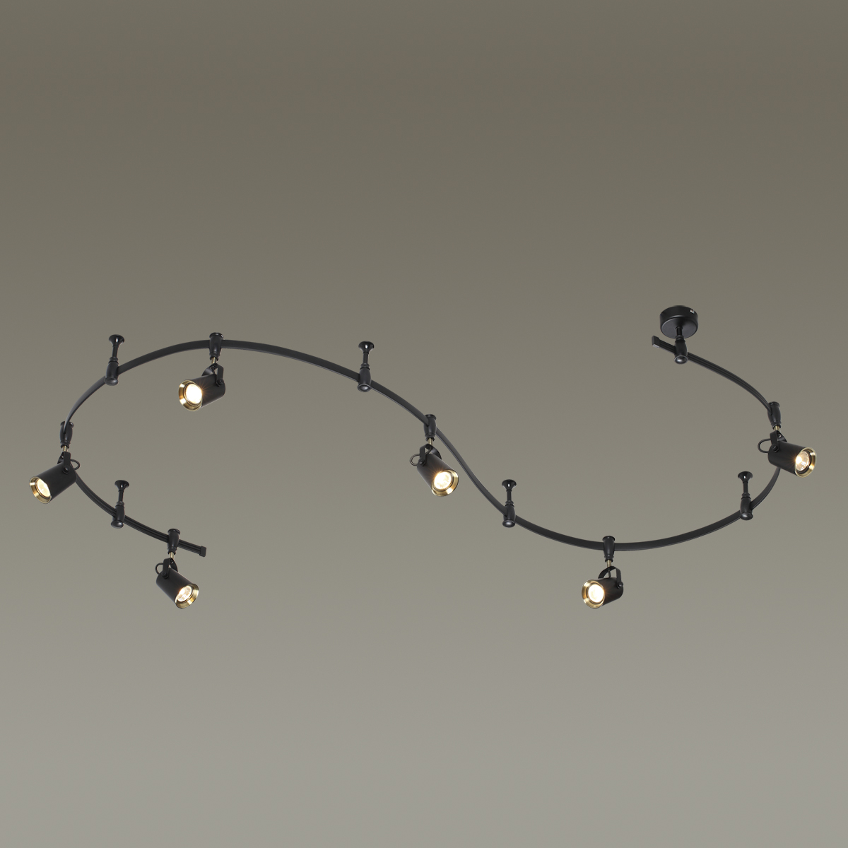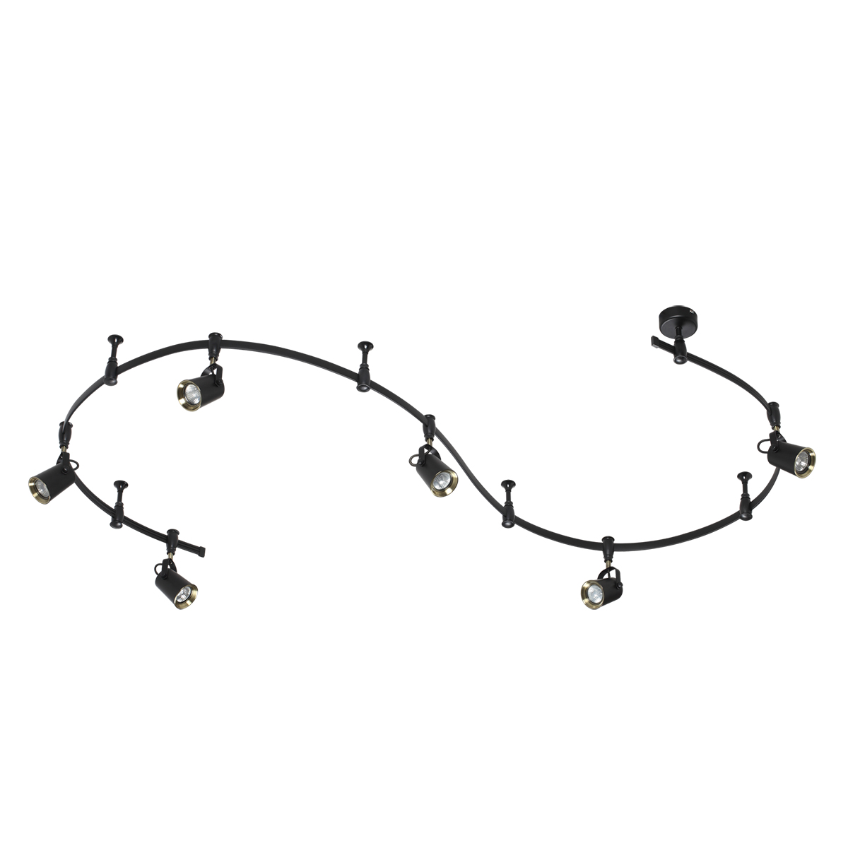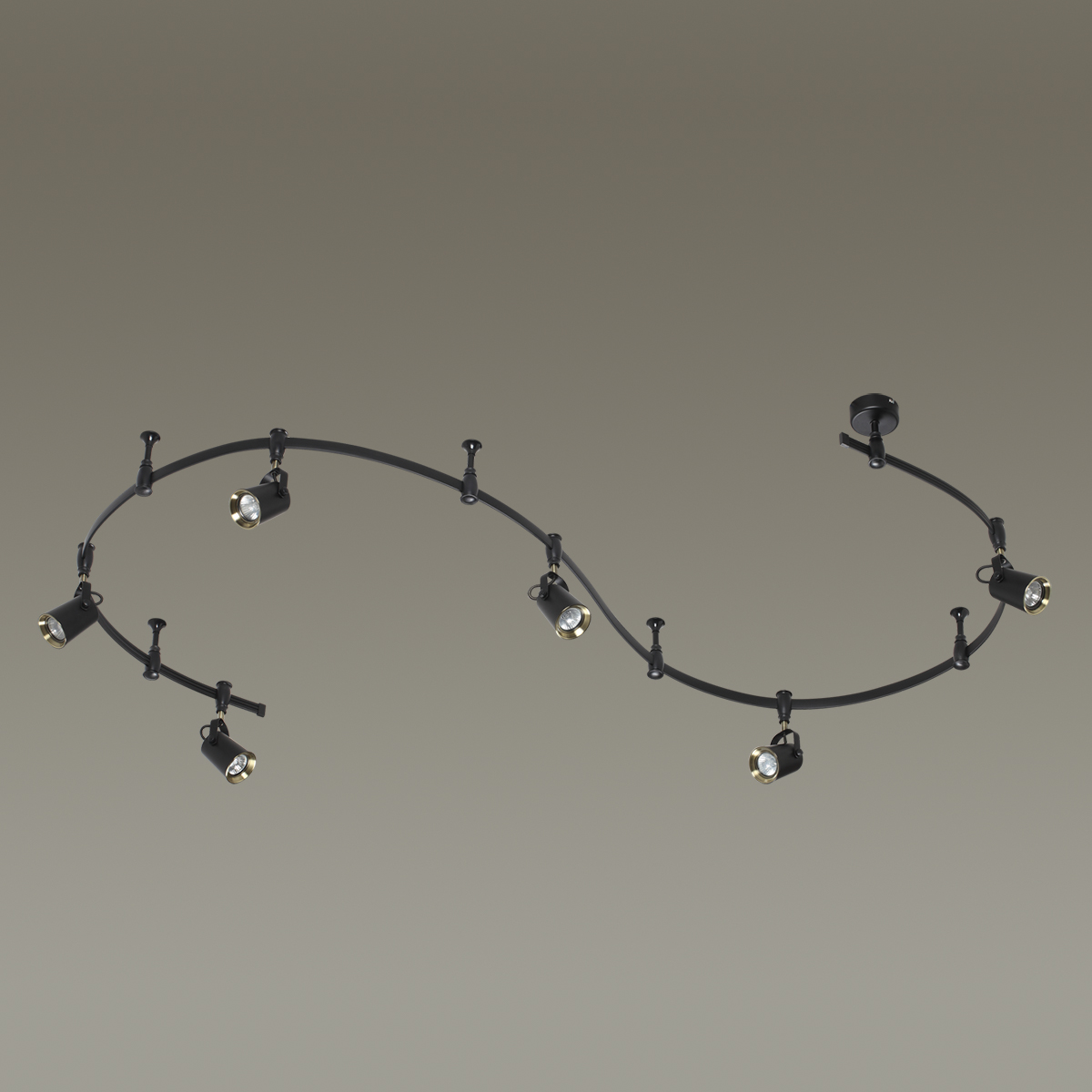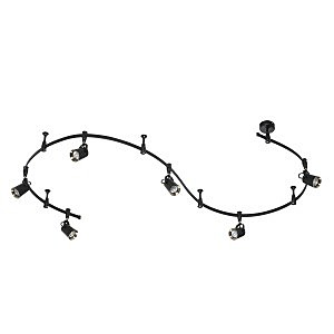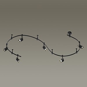 Трековые системы Flexi Black являются эффективным, функциональным и стильным решением для основного освещения разного рода помещений, особенно вытянутых и изогнутых помещений со смещенным выводом питания, помещений любой геометрии. Благодаря вытянутой конструкции системы можно обеспечить равномерное освещение гораздо большей площади, чем при использовании стандартной люстры c лампами аналогичной мощности, причем плафоны можно перемещать, регулировать их положение и компоновку. Благодаря небольшой высоте светильник отлично подойдет для комнат с невысокими потолками. Длина шины составляет 3500 мм, также в комплект входит 4 опорных стойки и 6 регулируемых плафонов. Светильник выполнен в черном цвете в сочетании с элементами в цвете античной бронзы, и идеально подойдет для самых разных стилей: лофт, Техно, Ретро, Винтаж. Для дополнительной установки на шину можно приобрести дополнительно плафоны. Для светильника необходимо приобретение дополинтельных ламп GU10 50W.