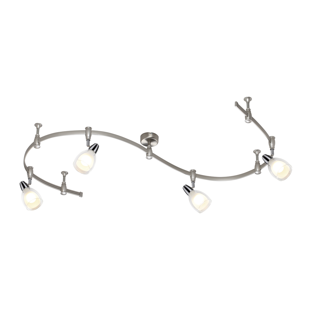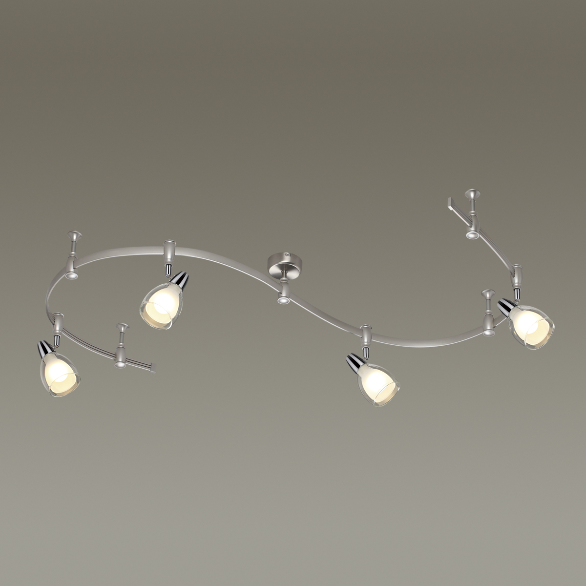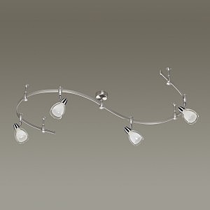 Трековые системы Flexi Chrome являются эффективным, функциональным и стильным решением для основного освещения разного рода помещений, особенно вытянутых и изогнутых помещений со смещенным выводом питания, помещений любой геометрии. Благодаря вытянутой конструкции системы можно обеспечить равномерное освещение гораздо большей площади, чем при использовании стандартной люстры c лампами аналогичной мощности, причем плафоны можно перемещать, регулировать их положение и компоновку. Благодаря небольшой высоте светильник отлично подойдет для комнат с невысокими потолками. Длина шины составляет 2400 мм, также в комплект входит 4 опорных стойки и 4 регулируемых плафона. Светильник выполнен в хроме, в плафоне используется двойное стекло, идеально подойдет для интерьера в современном стиле. Для дополнительной установки на шину можно приобрести дополнительно плафоны. Для светильника необходимо приобретение дополинтельных ламп GU10 50W.