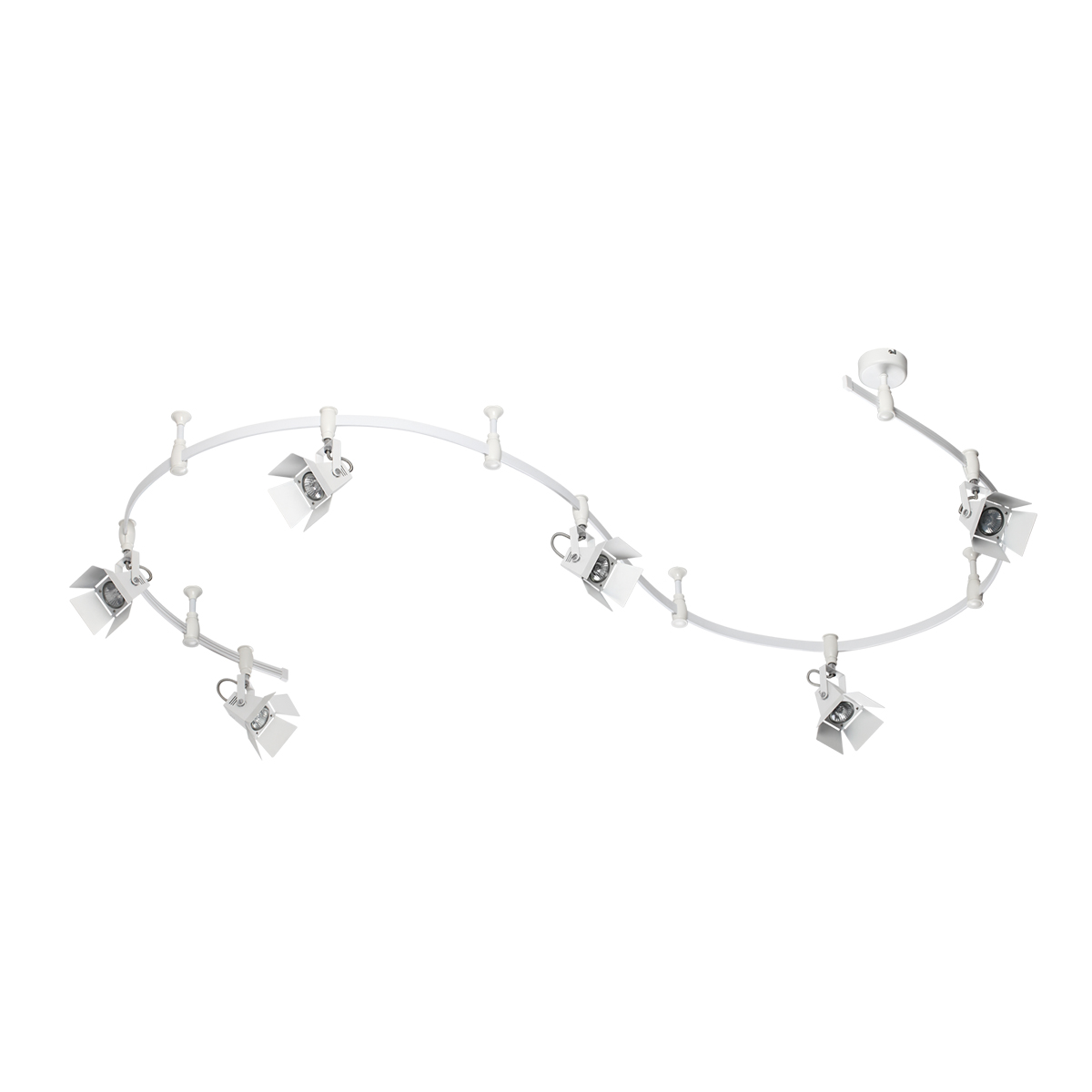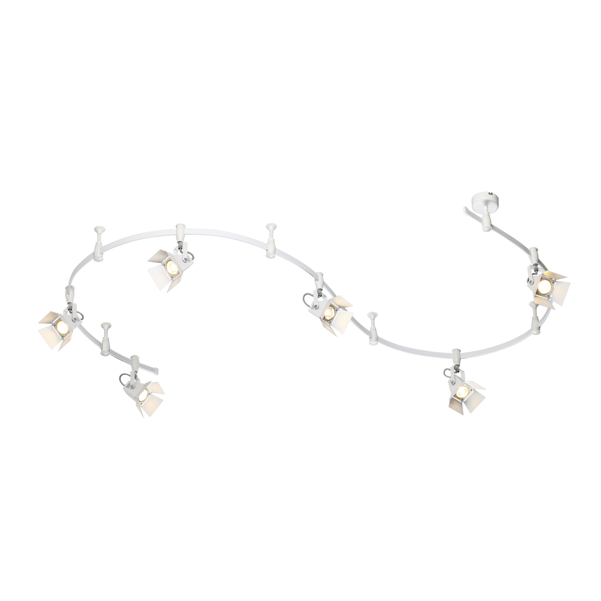 Трековые системы Flexi Techno Pro являются эффективным, функциональным и стильным решением для основного освещения разного рода помещений, особенно вытянутых и изогнутых помещений со смещенным выводом питания, помещений любой геометрии. Благодаря вытянутой конструкции системы можно обеспечить равномерное освещение гораздо большей площади, чем при использовании стандартной люстры c лампами аналогичной мощности, причем плафоны можно перемещать, регулировать их положение и компоновку. Благодаря небольшой высоте светильник отлично подойдет для комнат с невысокими потолками. Длина шины составляет 3500 мм, также в комплект входит 4 опорных стойки и 6 регулируемых плафонов. Светильник выполнен в белом цвете, идеально подойдет для стилей: лофт, Индастриал, Техно. Для дополнительной установки на шину можно приобрести дополнительно плафоны. Для светильника необходимо приобретение дополинтельных ламп GU10 50W.