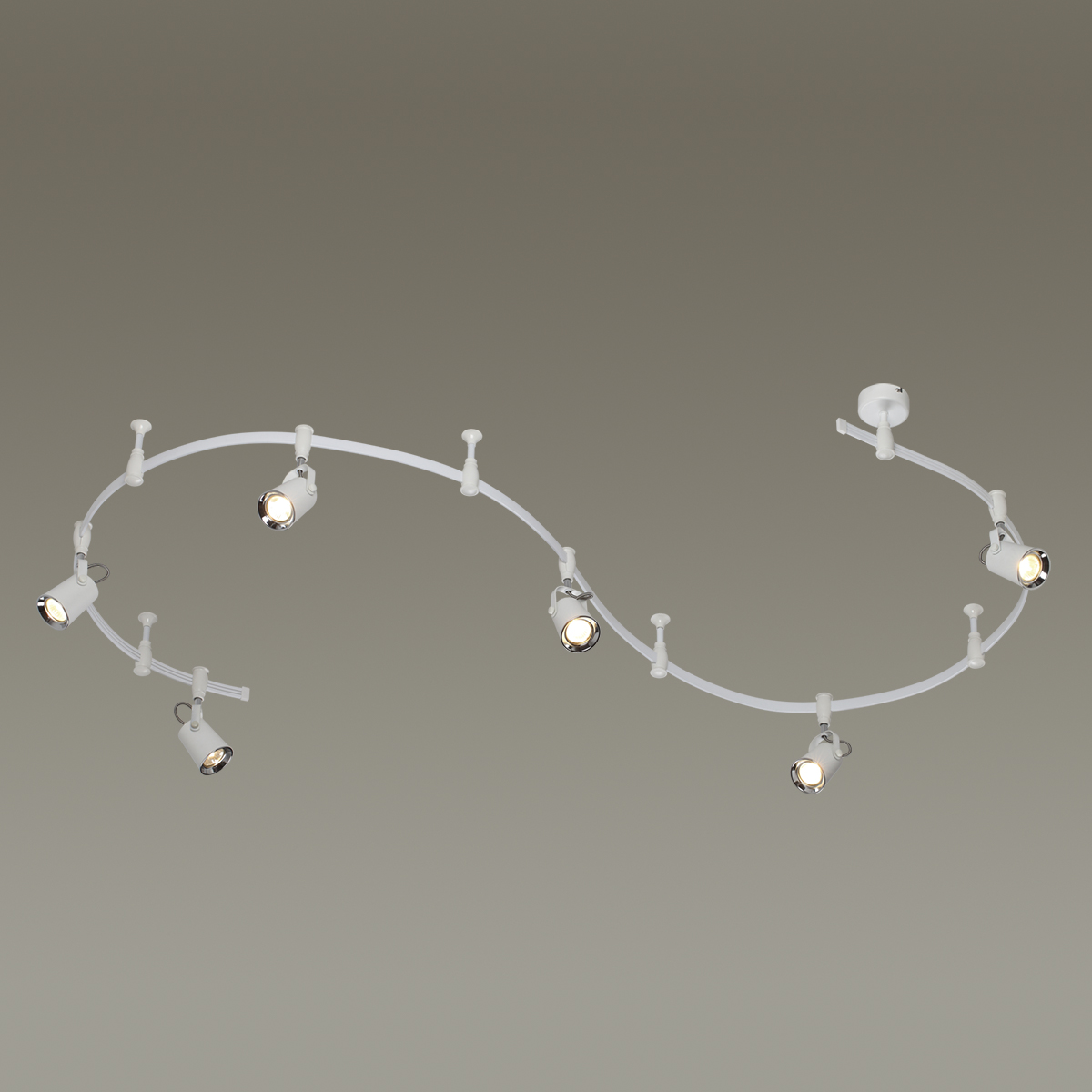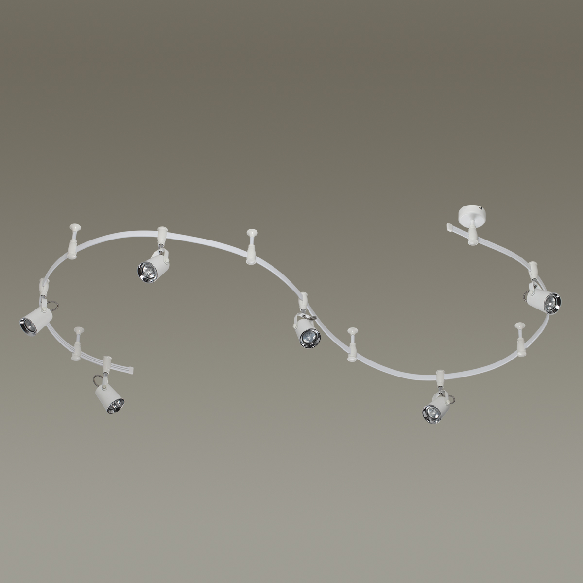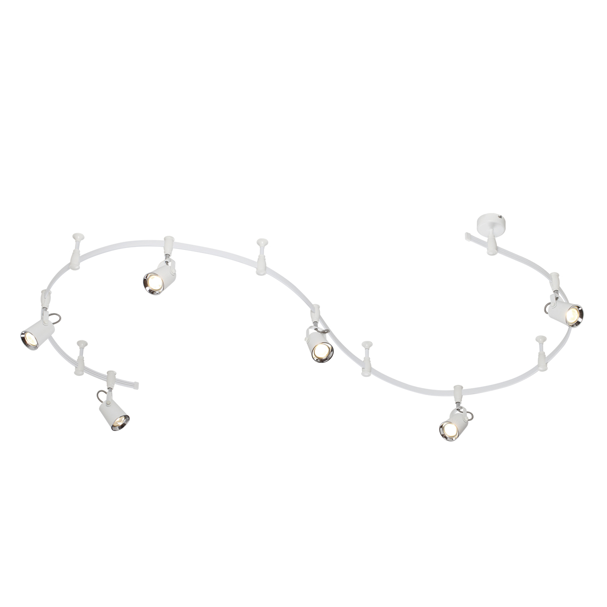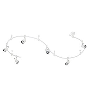 Трековые системы Flexi White являются эффективным, функциональным и стильным решением для основного освещения разного рода помещений, особенно вытянутых и изогнутых помещений со смещенным выводом питания, помещений любой геометрии. Благодаря вытянутой конструкции системы можно обеспечить равномерное освещение гораздо большей площади, чем при использовании стандартной люстры c лампами аналогичной мощности, причем плафоны можно перемещать, регулировать их положение и компоновку. Благодаря небольшой высоте светильник отлично подойдет для комнат с невысокими потолками. Длина шины составляет 3500 мм, также в комплект входит 4 опорных стойки и 6 регулируемых плафонов. Светильник выполнен в белом цвете в сочетании с хромированными элементами и идеально подойдет для самых разных стилей благодаря универсальности белого цвета. Для дополнительной установки на шину можно приобрести дополнительно плафоны. Для светильника необходимо приобретение дополинтельных ламп GU10 50W.