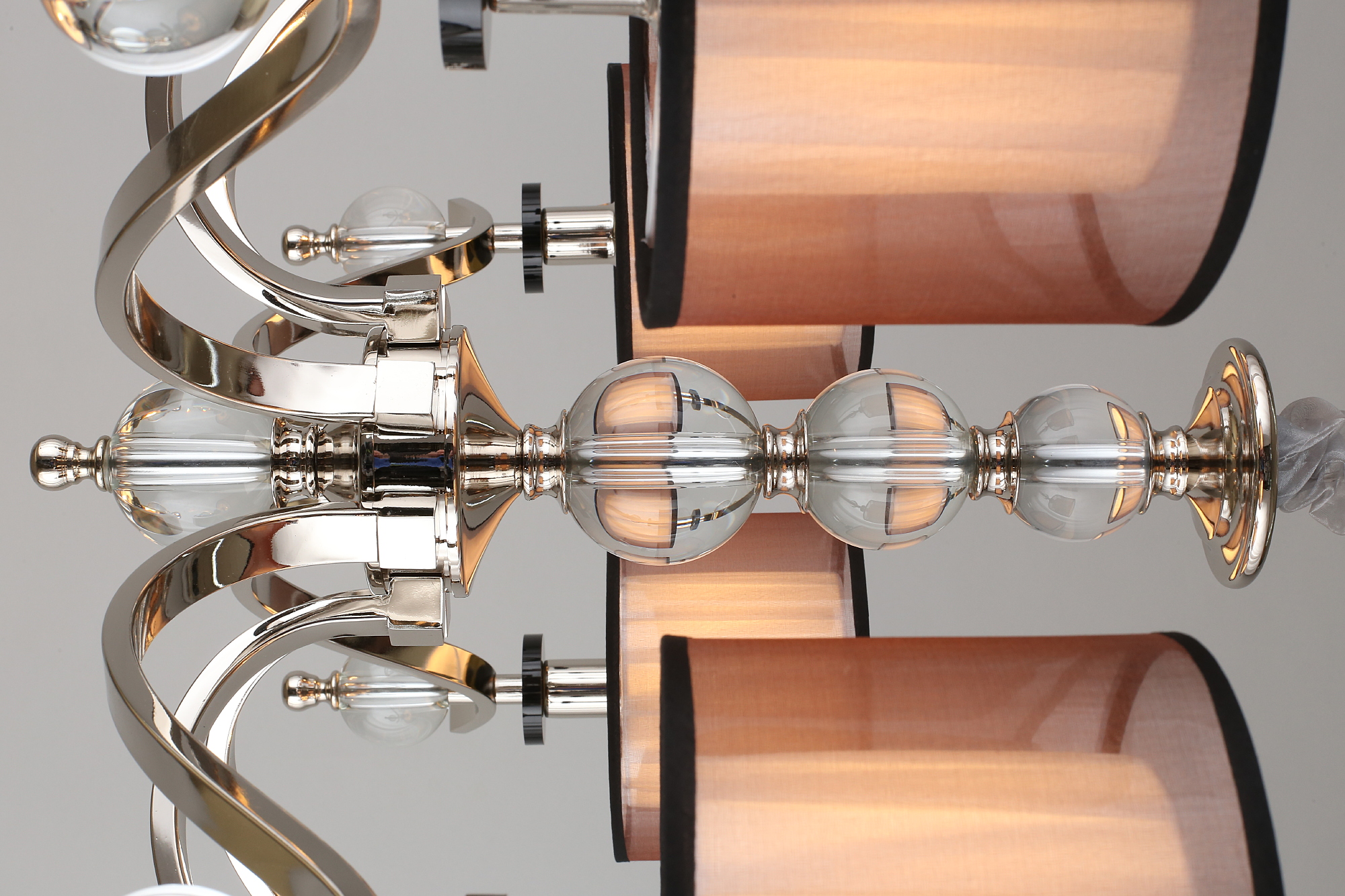 Допускается отличие страны-изготовителя, указанной в характеристиках. Линии производства могут находиться в нескольких государствах. Это не влияет на качество изготовления товара: все заводы данного бренда работают по общим стандартам, а готовые изделия проходят соответствующий контроль.Польша Коллекция Floret ЦветЦвет арматуры Хром Цвет Хром Материал арматуры Металл Цвет декора прозрачный Цвет плафона Белый, Черный Материал декора Хрусталь Материал плафона Ткань РазмерыВысота (мм) 1480 Диаметр (мм) 820 Высота минимальная (мм) 480 Ширина (мм) 820 ЭлектрикаКоличество ламп (шт) 8 Цоколь E14 Лампочки в комплекте Нет в комплекте Мощность лампы (Вт) 40 Общая мощность (Вт) 320 Световой поток 3360 Дополнительная информацияСпособ крепления Крюк Степень защиты (IP) IP20 Вес (Кг) 9.8 Тип подвеса На цепи -