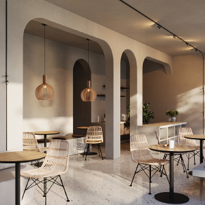 Черная арматура с глянцевой поверхностью выполнена из алюминия. Плафоны могут вращаться независимо друг от друга, обеспечивая точечное освещение зон. Две модели - в спотовом или подвесном исполнении. LED-источники поддерживают переменную цветовую температуру в диапазоне от 3000К до 6000К. При использовании стандартных блоков питания без функции управления, светильники при установке в трек одной стороной имеют цветовую температуру 3000K, а при установке другой стороной - 6000К. Светильники поддерживают функцию группового диммирования и регулировки цветовой температуры при использовании блоков питания по протоколам Bluetooth Mesh или DALI.