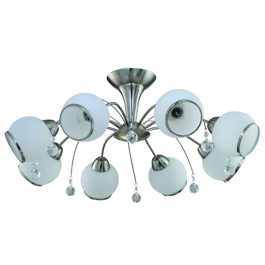 Допускается отличие страны-изготовителя, указанной в характеристиках. Линии производства могут находиться в нескольких государствах. Это не влияет на качество изготовления товара: все заводы данного бренда работают по общим стандартам, а готовые изделия проходят соответствующий контроль.Китай Коллекция Fort Worth ЦветЦвет арматуры Никель Цвет Никель Материал арматуры Металл Цвет плафона Белый Материал декора Хрусталь Материал плафона Стекло РазмерыВысота (мм) 320 Диаметр (мм) 780 Ширина (мм) 780 ЭлектрикаКоличество ламп (шт) 8 Цоколь E27 Тип лампы Накаливания, Энергосберегающая (КЛЛ) Мощность лампы (Вт) 60 W Напряжение (В) 220 Дополнительная информацияСтепень защиты (IP) IP20 -